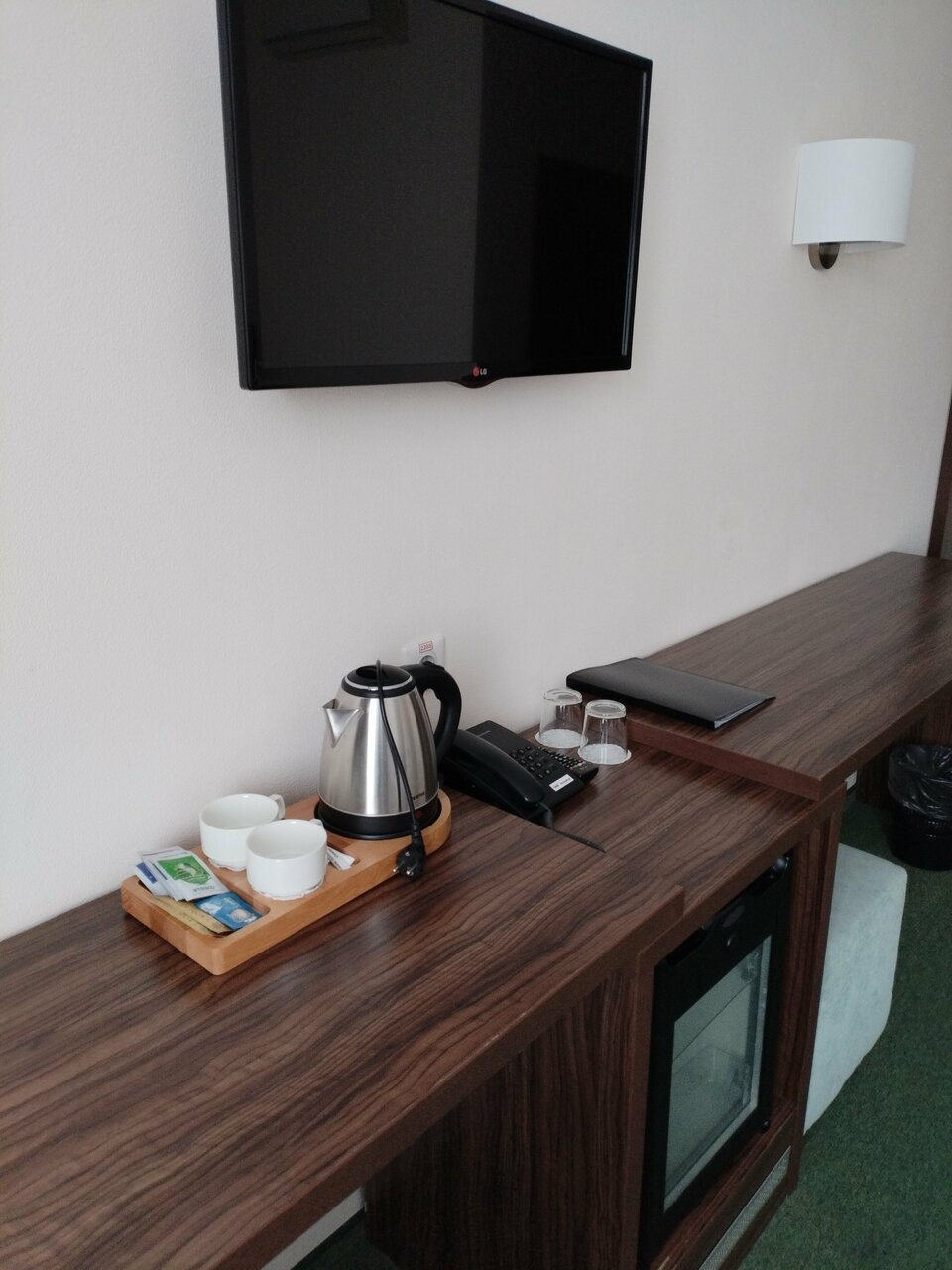 Брал номер на две кровати с видом на дорогу, но для гостиницы около аэропорта это не самое главное. В номере чисто, тепло, есть кофе, чай. На ресепшн вежливая девушка, оплатить можно как угодно, в стоимость так же можно включить завтрак, не самый изысканный, но опять же, с утра перед вылетом, самое оно. От аэропорта в 15 минутах на такси, что тоже весьма удобно.