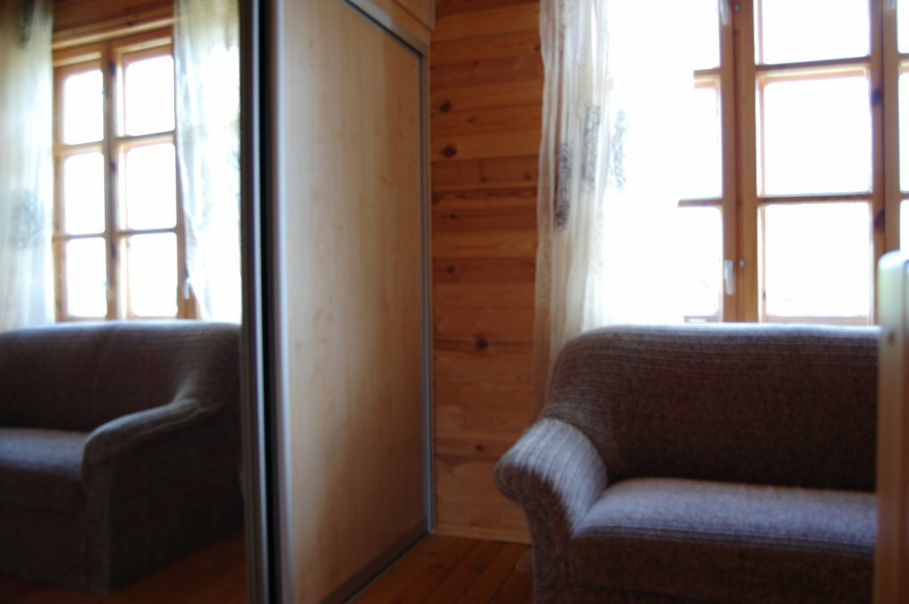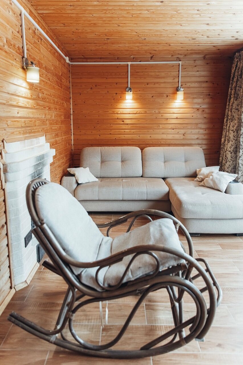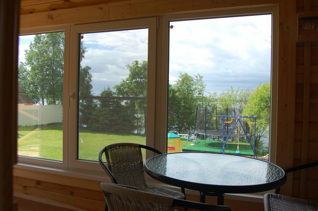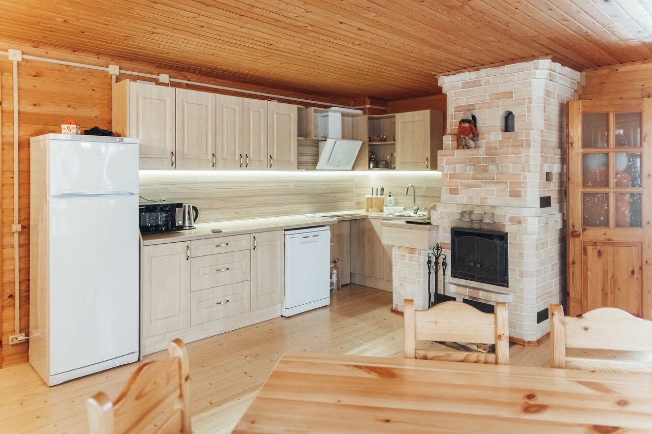 Услуги: — Номера (от 5000 до 9000 ₽/ночь) с видом на природу, камином и детскими кроватями (бесплатно для детей до 3 лет). — Бесплатная парковка, сауна, баня, собственный песчаный пляж и рыбалка. — Трансфер (платный), детская площадка, место для пикника и хранения лыж. — Проживание с животными (платно), уборка, стиральная машина.