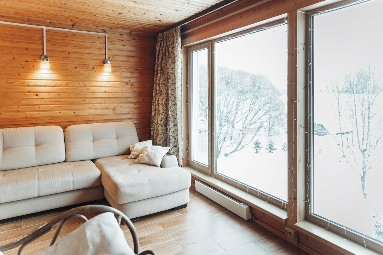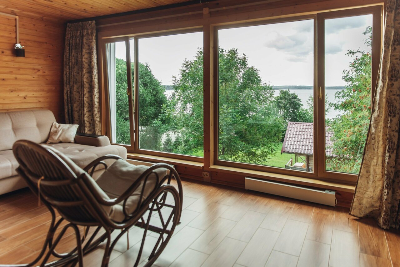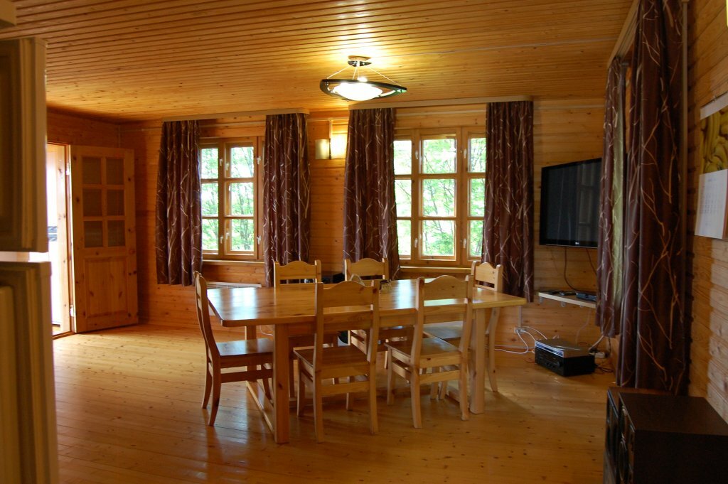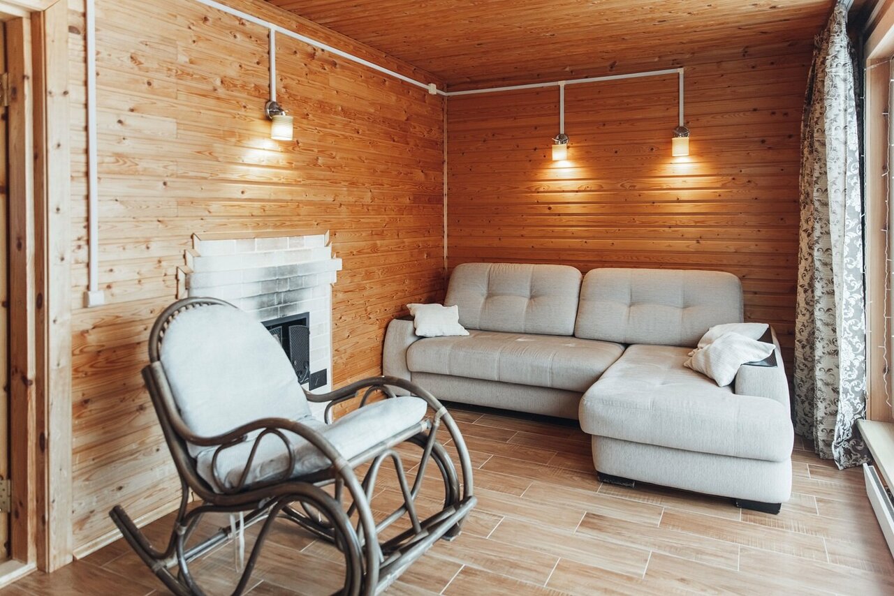 Услуги: — Номера (от 5000 до 9000 ₽/ночь) с видом на природу, камином и детскими кроватями (бесплатно для детей до 3 лет). — Бесплатная парковка, сауна, баня, собственный песчаный пляж и рыбалка. — Трансфер (платный), детская площадка, место для пикника и хранения лыж. — Проживание с животными (платно), уборка, стиральная машина.