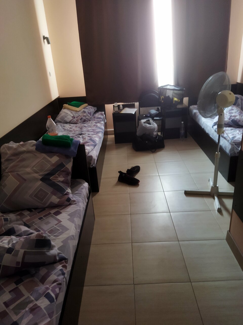 Хороший, чистый номер, чай, кофе, посуда. Чистый санузел, свежее постельное. Единственный минус нет номера с двухспальной кроватью, но когда нужно просто переночевать — хороший вариант. С утра работает столовая, можно позавтракать.