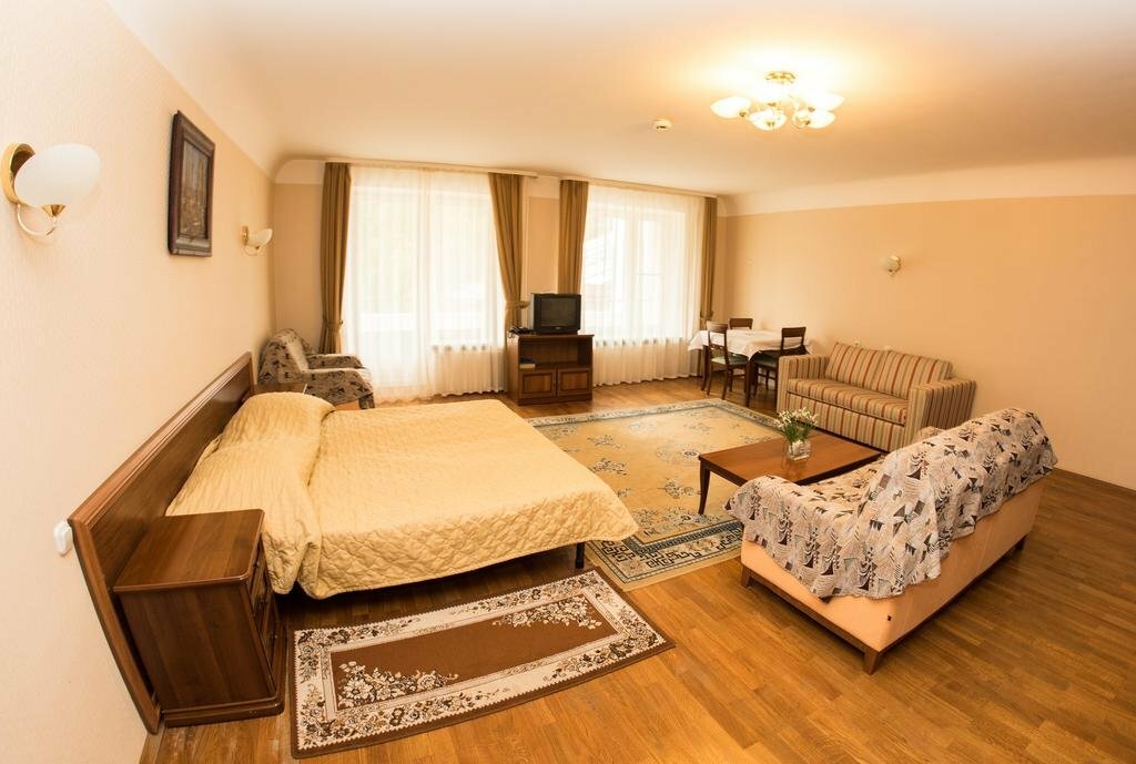 - Просторные номера.; Спокойная атмосфера.; Отзывчивый и вежливый персонал.; Приветливый персонал.; Близость к бане "Молодея".