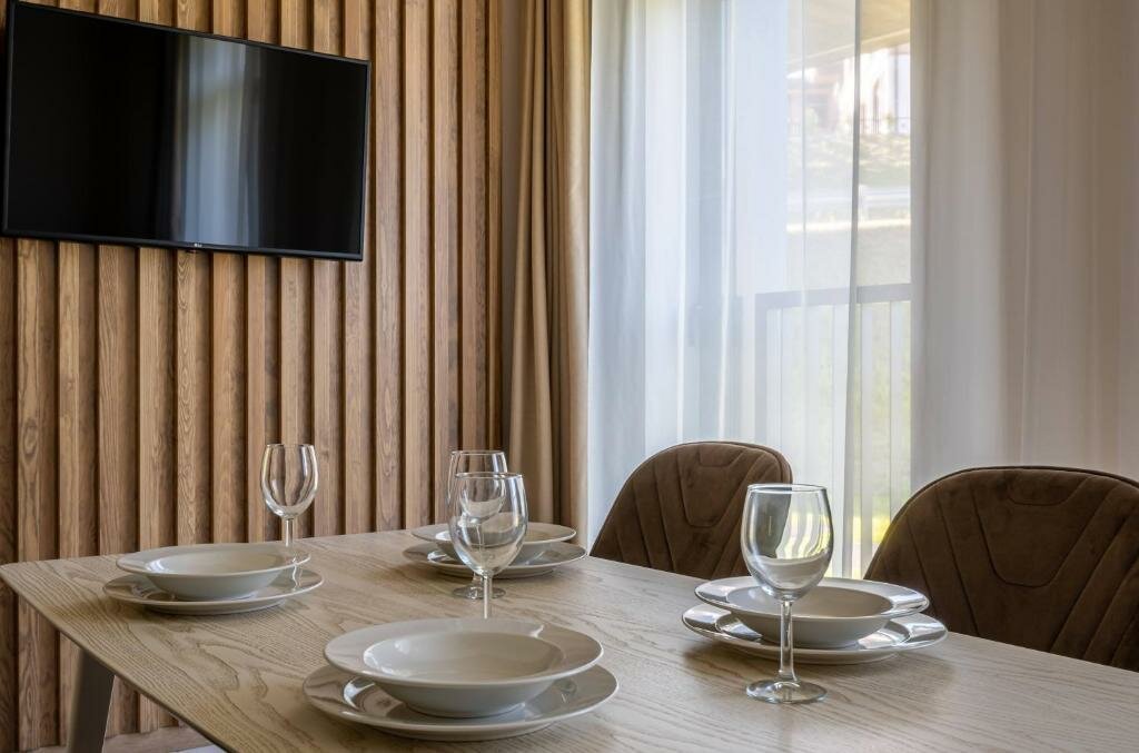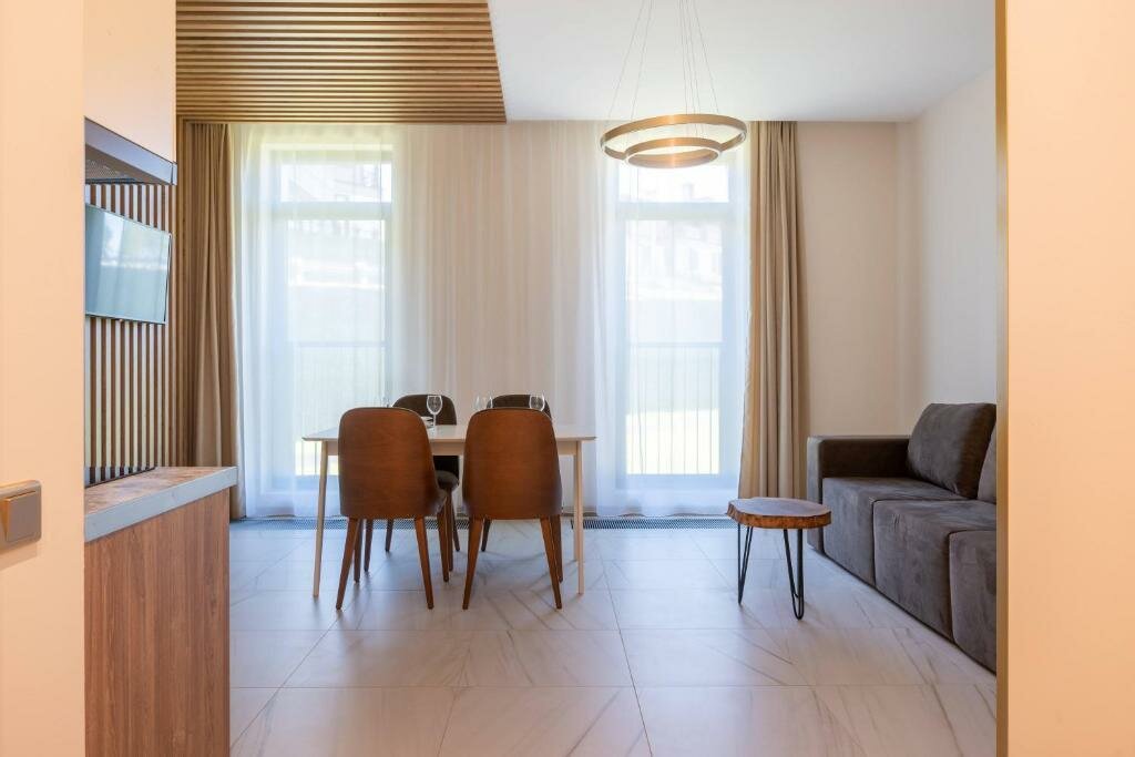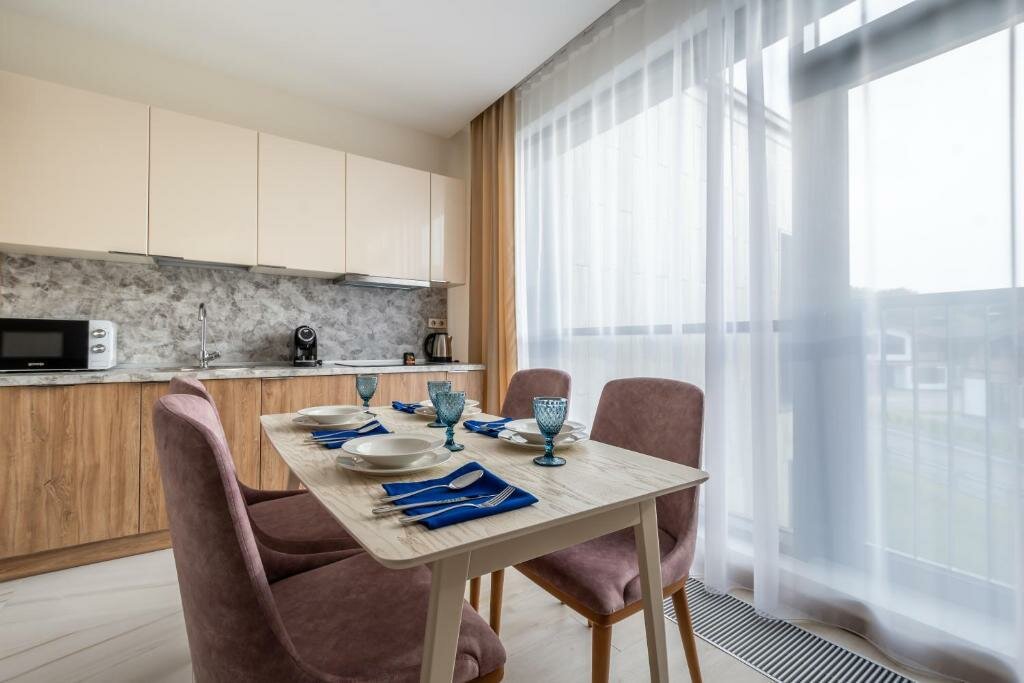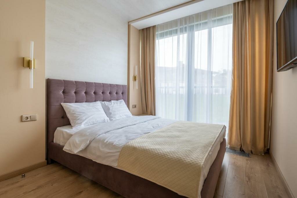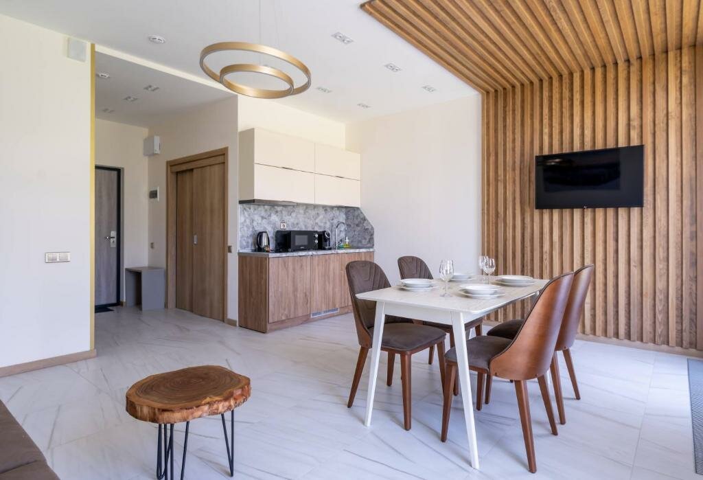 Просторный номер с 2 комнатами и кухней-гостиной. Мебели достаточно, на кухне тоже все необходимое есть. Администратор во всех вопросах помогала, впечатления остались очень положительные. Из минусов: однозначно необходимо установить сетки на окна. Мы постоянно ловили мух, ночных мотыльков и ос с пчелами, залетающими в открытые окна.