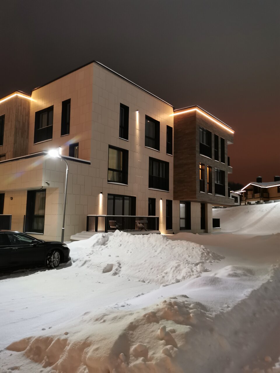 Шикарное место для уютного семейного отдыха, за забором в двух шагах курорт Охта-Парк со всеми развлечениями. Немного напоминает горную деревню в Красной поляне.