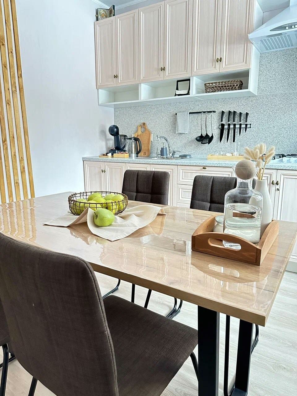Удобства включают: — Номера с кухонным уголком, холодильником, плитой, микроволновкой, посудой и чайником — Бесплатная открытая парковка — Бесплатный Wi-Fi, телевизор, фен, утюг, стиральная машина — Санузел в номере, душ, тапочки — Лифт, прокат велосипедов — Красивый вид из окна