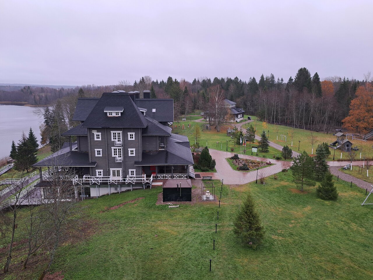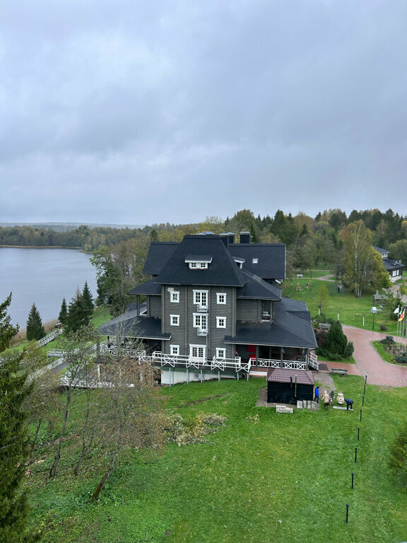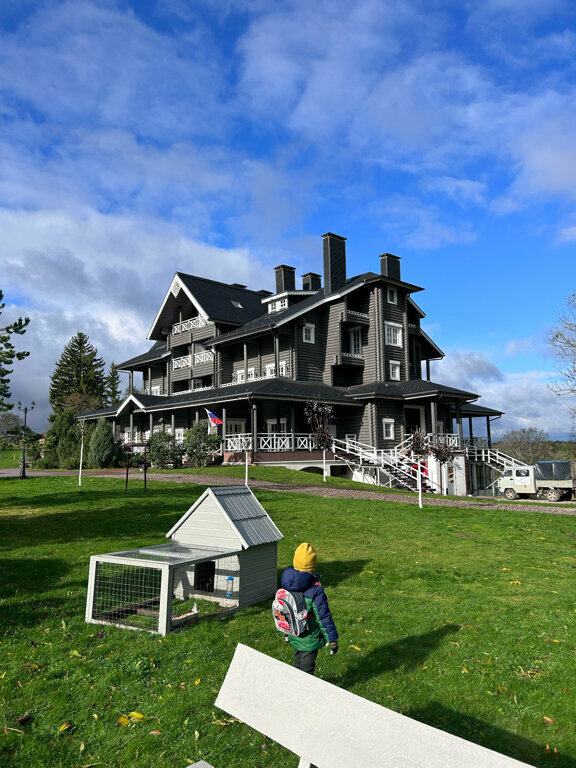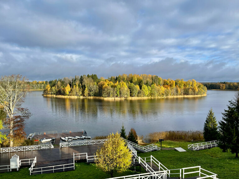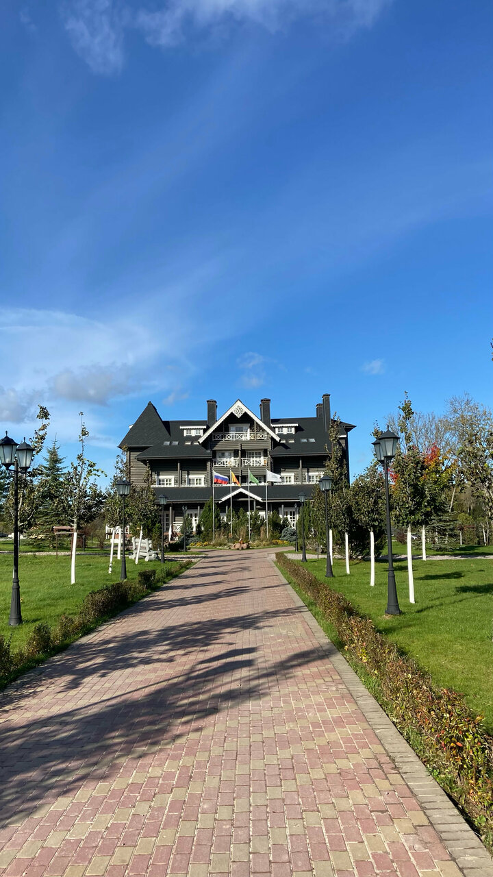 Это какое-то волшебное место на берегу озера среди полей и лесов. Красивая природа и ландшафт территории. Сама стилистика загородных деревянных, но при этом современных домов уже сразу располагает и настраивает на отдых здесь минимум на неделю!) Встречают гостей доброжелательный и отзывчивый персонал отеля, наливают приветственные настойки. Номера в отеле стильные современные и очень комфортные (у нас номер с балконом, вид на парк). Удобные подушки, мягкое постельное белье. Есть прокат всяческого вида транспорта от велосипеда до катера и даже трактора! Экскурсии, ферма, вольеры, спорткомплекс, бани и сауны. Все что нужно для отдыха здесь есть. Отдельно выделяю кухню ресторана, шеф действительно делает вещи, салаты, закуски, горячее все очень вкусно! Здесь можно спокойно почитать книжку (есть своя коллекция) либо активно провести день. Есть экскурсии, оч. рекомендую на катере с пикником на остром Куропаткина. Отдых супер!