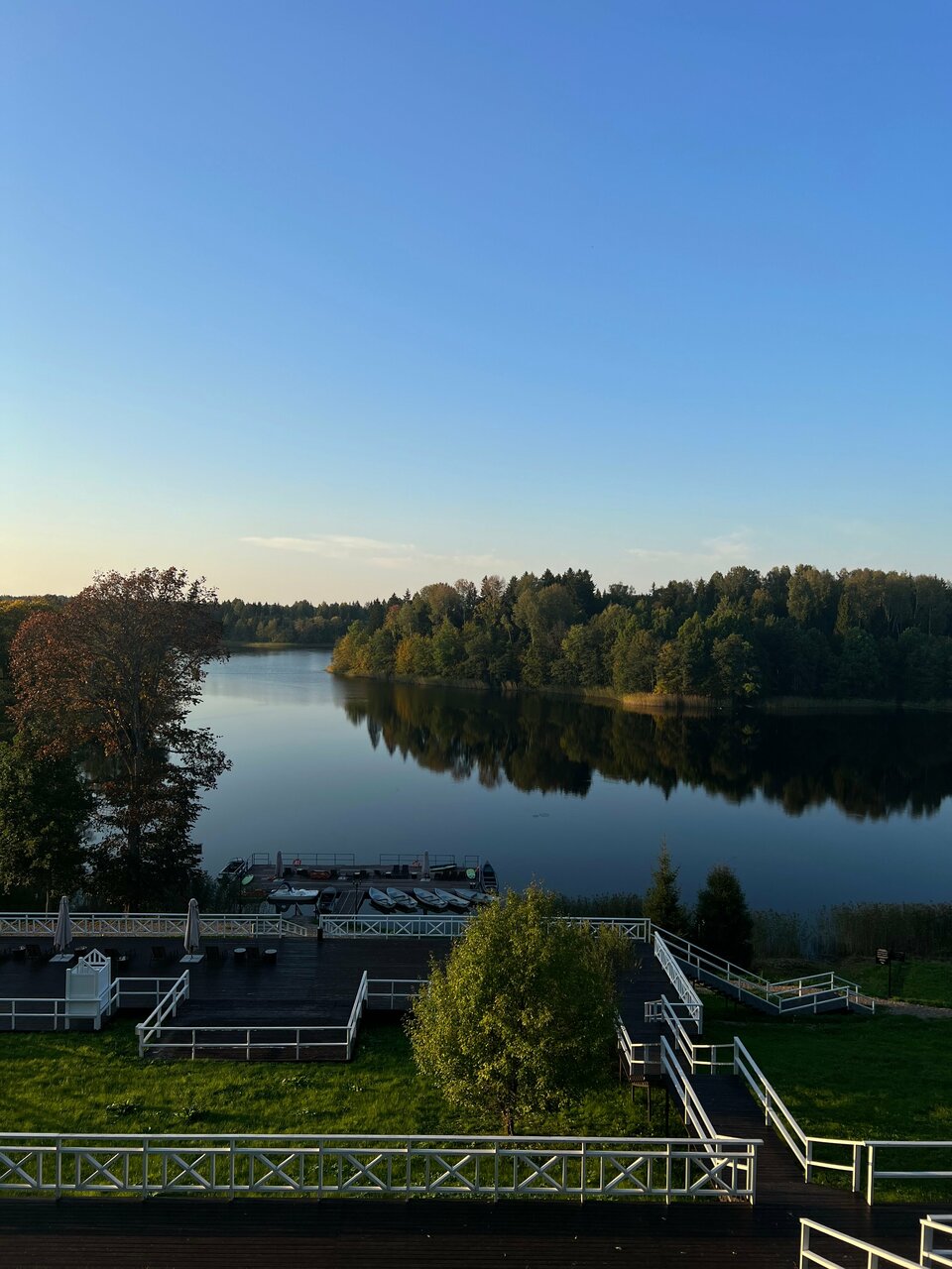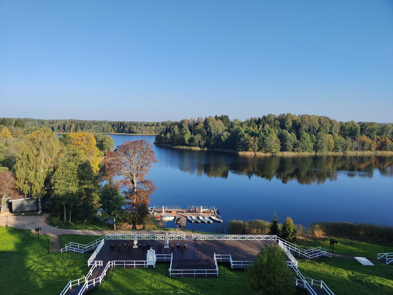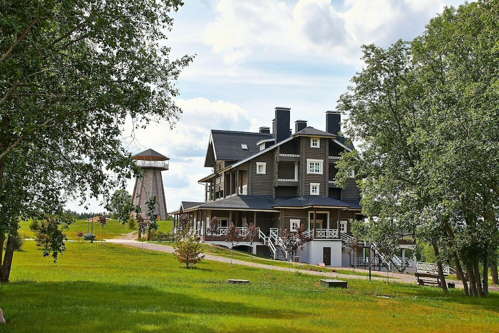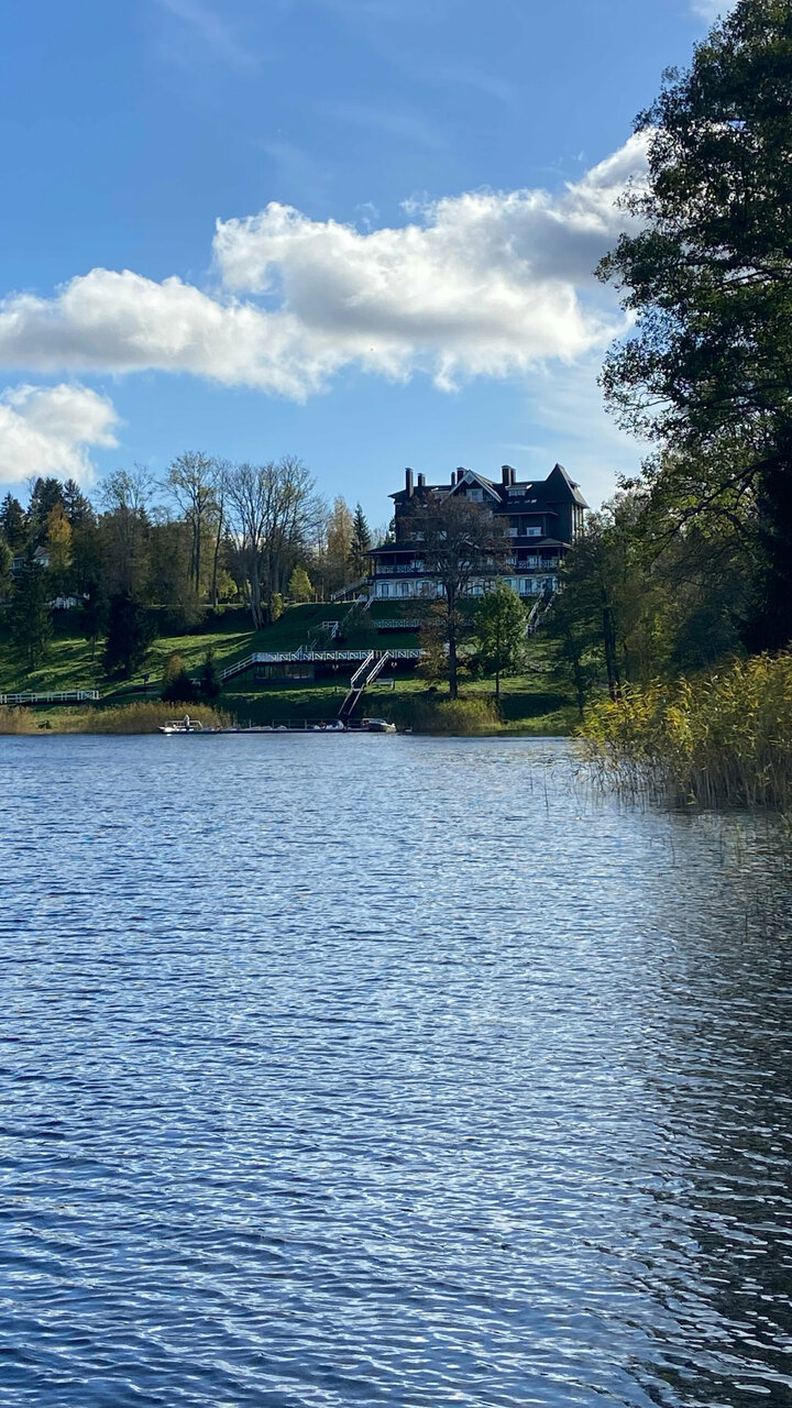 Это какое-то волшебное место на берегу озера среди полей и лесов. Красивая природа и ландшафт территории. Сама стилистика загородных деревянных, но при этом современных домов уже сразу располагает и настраивает на отдых здесь минимум на неделю!) Встречают гостей доброжелательный и отзывчивый персонал отеля, наливают приветственные настойки. Номера в отеле стильные современные и очень комфортные (у нас номер с балконом, вид на парк). Удобные подушки, мягкое постельное белье. Есть прокат всяческого вида транспорта от велосипеда до катера и даже трактора! Экскурсии, ферма, вольеры, спорткомплекс, бани и сауны. Все что нужно для отдыха здесь есть. Отдельно выделяю кухню ресторана, шеф действительно делает вещи, салаты, закуски, горячее все очень вкусно! Здесь можно спокойно почитать книжку (есть своя коллекция) либо активно провести день. Есть экскурсии, оч. рекомендую на катере с пикником на остром Куропаткина. Отдых супер!