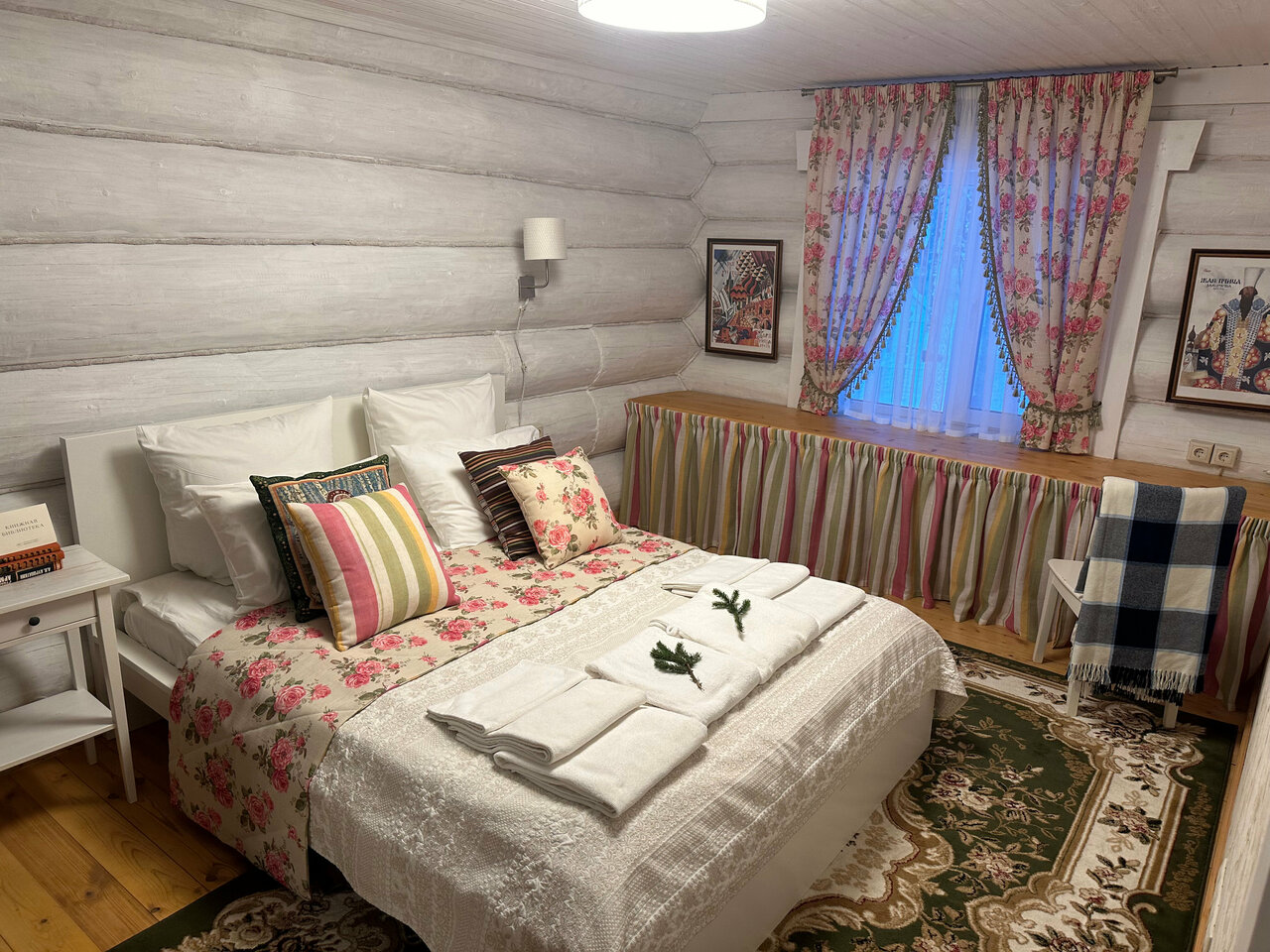 Волею судьбы, мне посчастливилось побывать в этом райском месте! Дата пребывания 1-2 марта 2023 г. Мы приехали уже вечером, когда было темно, и ещё подъезжая, я поняла, что попаду в зимнюю сказку! Мои ожидания меня не обманули. Встретили так, вроде бы, меня только и ждали! Все настолько искренне расположены, что это берёт за душу! Девочки-официантки в ресторане, Кристина и Людмила, милейшие создания! Ресторан — это отдельная тема! Сказать, что вкусно-это ничего не сказать! Шеф-повара ‘Брависсимо’! Мой номер находился в мансарде, из которого открывался очень красивый вид на соседний коттедж. В номере : просто всё супер! Мебель, кровать, постельное бельетна высшем уровне! Большой плюс: халаты, тапочки (качественные) и набор косметических средств (не самой дешёвой косметической компании). Но есть один минус: слышимость! Слышно всё! А какая там природа! Приезжайте! Не пожалеете! Настоятельно рекомендую!