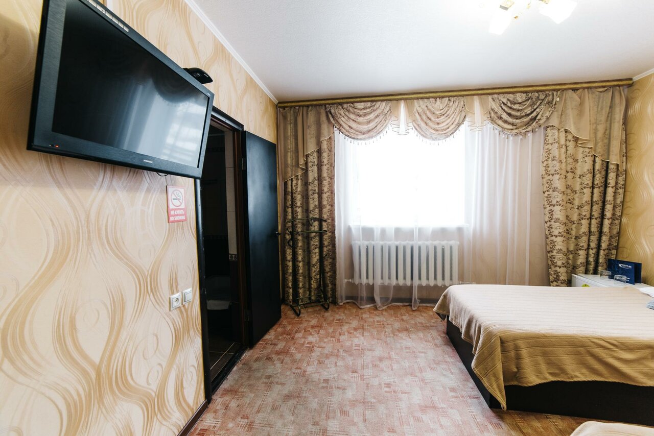 Довольно не плохо для заброшенного телятника. Но дороговато как для водителя грузовика. Номер с туолетом и душем от 1700 р. Телевизор маленький и идёт 1 канал). Ну я думаю что любителям провести нос с чужой женой он подойдёт ) стены толстые шумка хорошая ( не надо стесняться). Администратор приветливый. За 600 р о которых говориться на вывеске там можно поспать в компании с кошельком в руке))