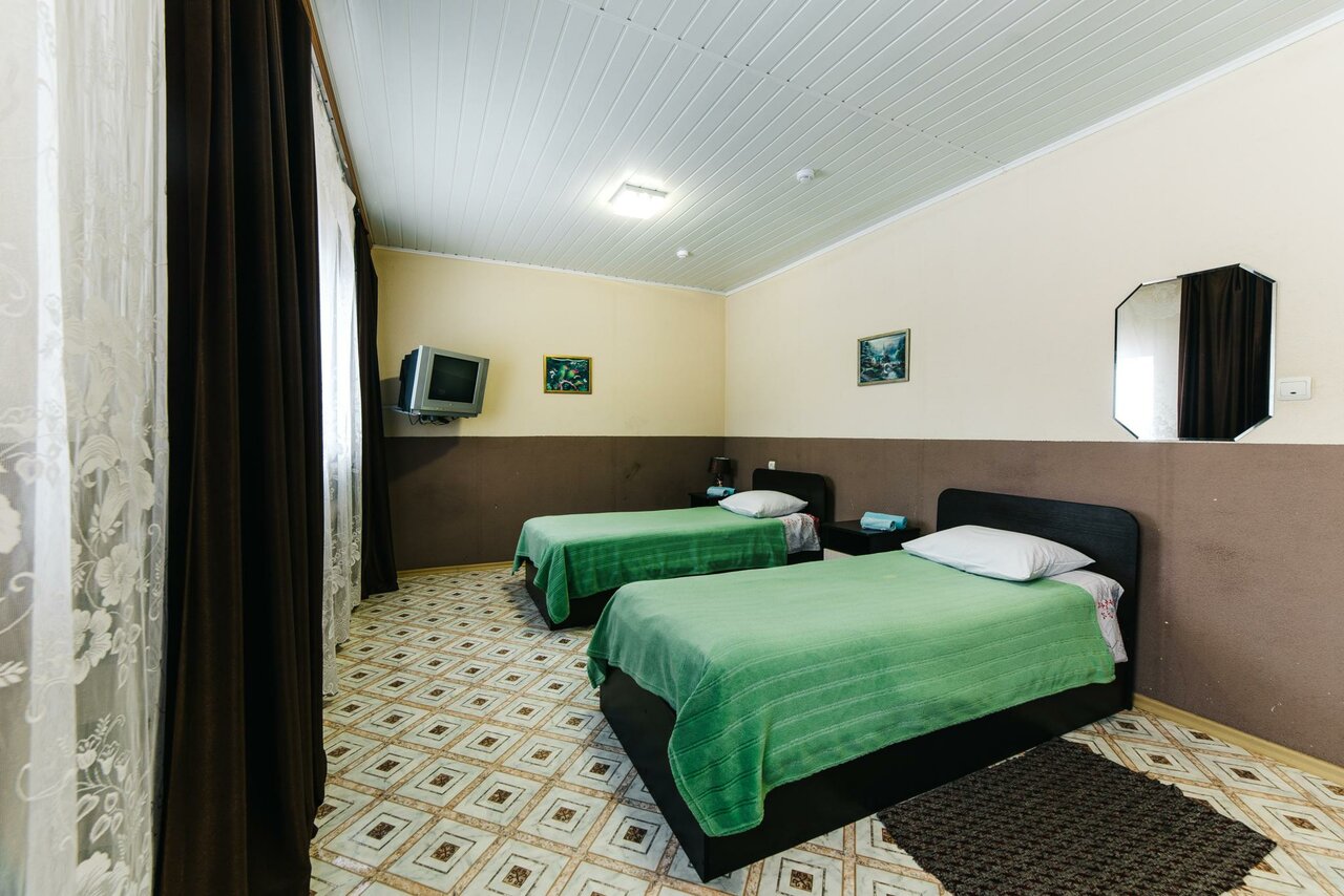 Ожидал лучшего за эту цену 2400 , двухместный номер с двумя одноместными кроватями, ковролин затёртый, в пятнах, которые уже не отмываются, не уютно, телевизор не работает, единственный огромный плюс администратору Елене, общительная, вежливая!!!!