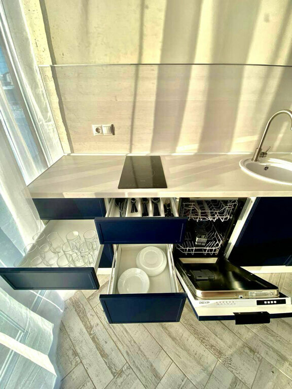 - Наличие посудомоечной машины, Wi-Fi, большого телевизора.