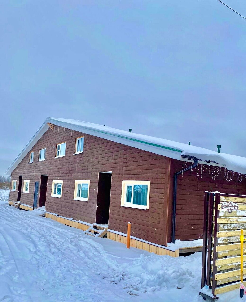 Расположена в деревне Низино на Ушаковской улице, 31. Предлагает комфортные номера с кондиционером, санузлом, холодильником, телевизором и Wi-Fi. В каждом номере — кухонный уголок с плитой, микроволновкой и посудой.