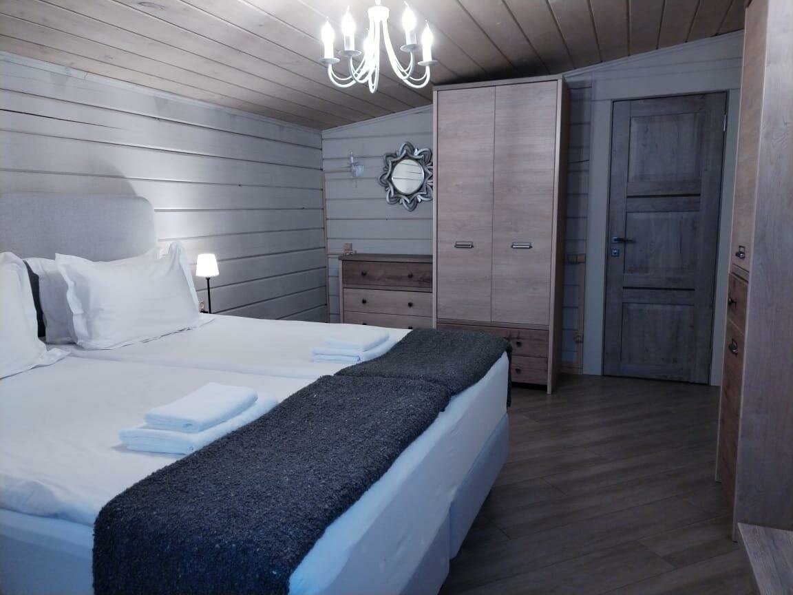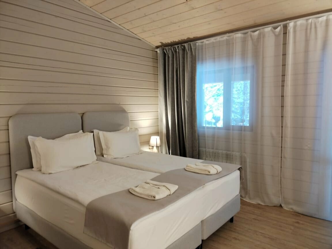 Всё очень понравилось! Живописные места, уезжать не хотелось.. рядом озеро, есть в прокате велики, лодки, сапы. Есть тренажерный зал, теннисные корты естественно, столы для пин-понга, брали номер на 3х но жили вдвоём, с завтраком(шведский) в идеале ехать на авто. Закрытая территория охраняемая, территория с лесом, есть грибы и ягоды. Из минусов- магазинов рядом нет, но мы ездили в Валдай в магазины, и покушать, потому что обед и ужин надо заранее заказывать и выбор небольшой, ну и недёшево. С голоду не помрёте, но хотелось бы немного разнообразия. В целом плюсов больше чем минусов. Уютно, чисто, убирают и меняют полотенца по требованию, персонал доброжелательный. Для пляжа выдадут отдельные полотенца- это прям очень приятно. Гигиенические наборы в наличии мыло, зубная щетка, паста, тапочки, халаты очень понравилось что в жару в домике не было жарко. Но из-за свежатины такой полотенца долго сохли) в люди случае это мелочи, и я бы вернулась ещё не раз!