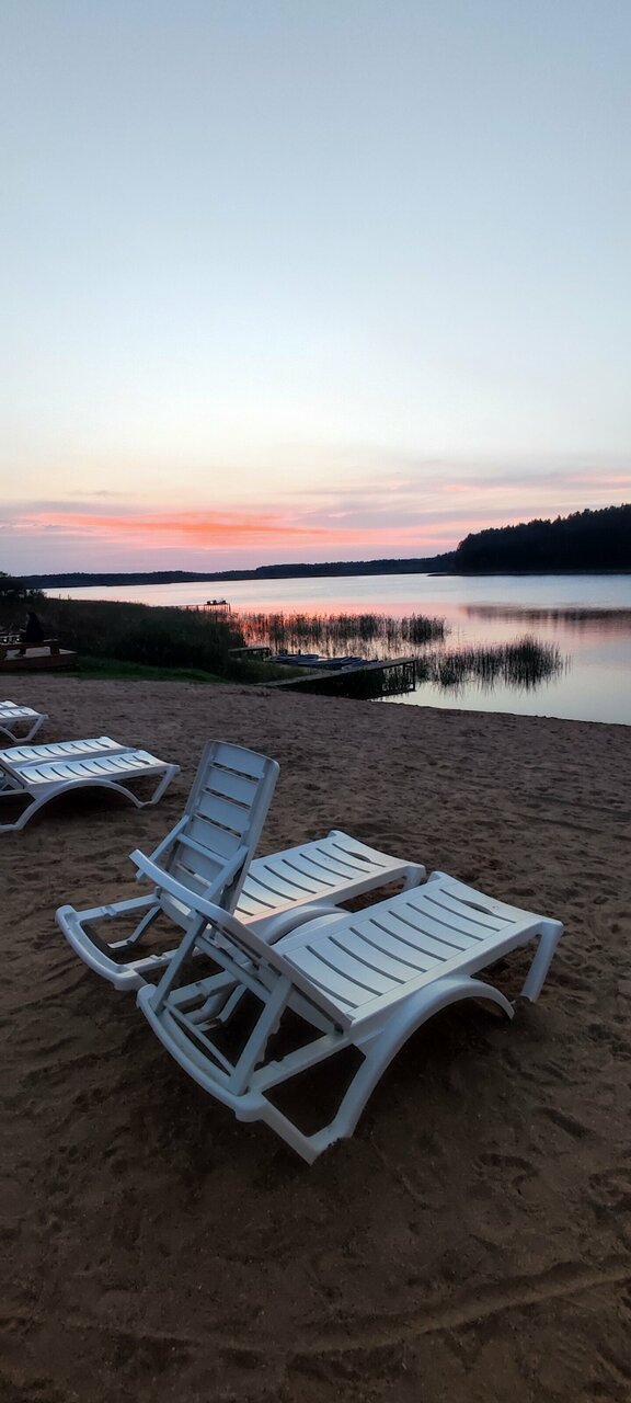 Отличное место для отдыха вдали от городской суеты. Расположен в сосновом бору на берегу озера. Есть пляж, открытый бассейн, тренажерный зал. Гостей размещают в уютных домиках из бруса с открытыми верандами. В стоимость включен завтрак шведский стол. Не очень понятно почему за кофе на завтрак надо доплачивать. Можно поплавать на лодках, спа-бордах. В целом очень приятное место