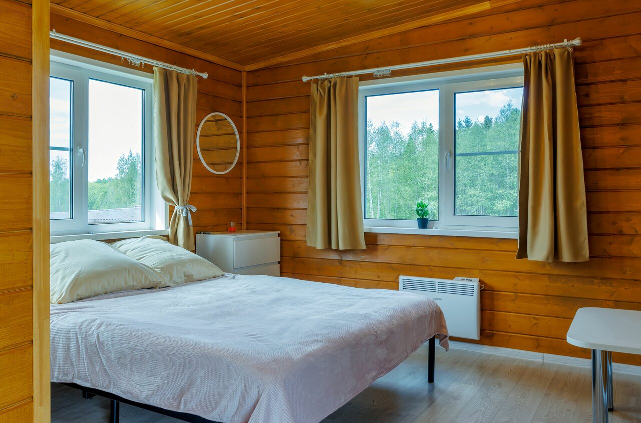 Заселение с 15:00, выезд до 12:00. Цены от 2500 ₽ за ночь. Принимаются гости с детьми и животными.