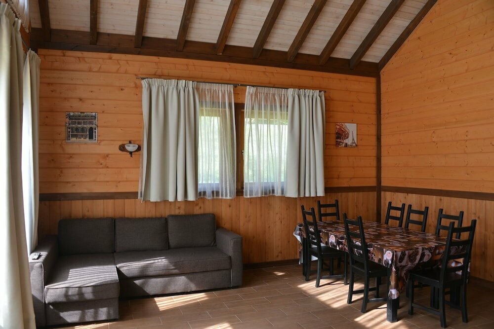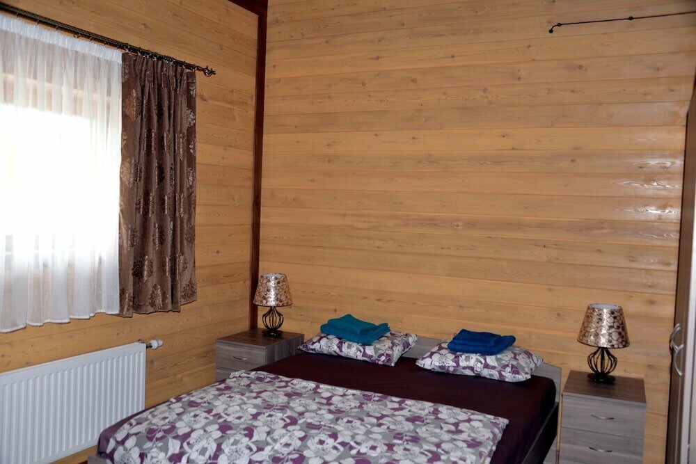 Прекрасное место для отдыха! Домики чудесные, все очень чисто и хорошо подготовлено для гостей, в наличии и полотенца, и постельное белье, и посуда. Есть все для активного отдыха взрослых и детей, территория поддерживается в хорошем состоянии, везде порядок и уют. В кафе небольшое меню, но готовят очень вкусно всё! Можно даже заказать еду для маленьких детей) Приезжали большой компанией с детьми на 3 дня, все было просто супер, обязательно будем рекомендовать друзьям, и желаем процветания этому прекрасному месту