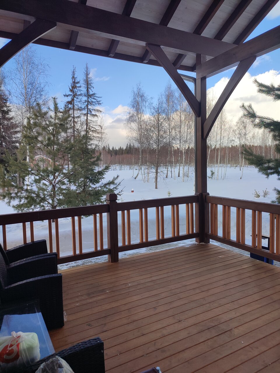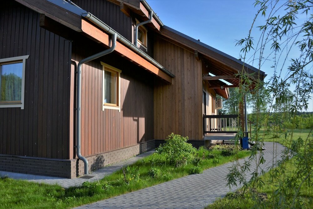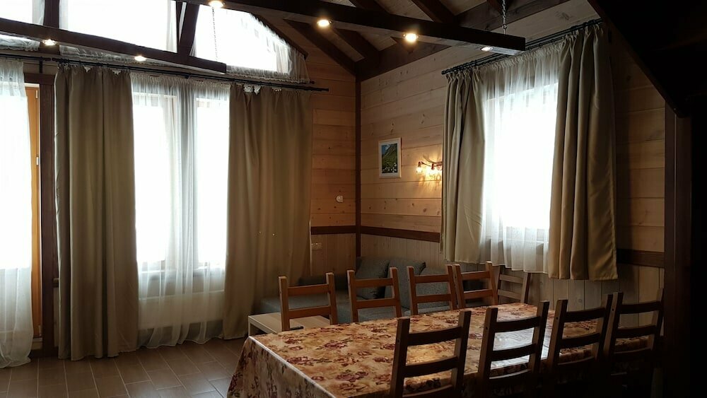 Большие просторные дома. Достаточно посуды, добротные мебель и сантехника. Полотенца и постельное бельё есть. Есть мыло. Но нет зубной пасты, геля для душа и шампуня, что было бы вполне нормально для отеля :) Снимаем второй раз (первый был зимой 2018), и второй раз отключается горячая вода в доме в первую же ночь после заселения, приходится звонить администратору и просить, чтобы включили. Территория ухоженная, снег регулярно чистят. Персонал очень вежливый. Можно заказать еду из ресторана. Меню не слишком обширное, но вполне внятное. В целом впечатление положительное, вернёмся ещё.