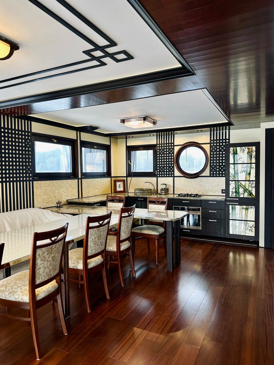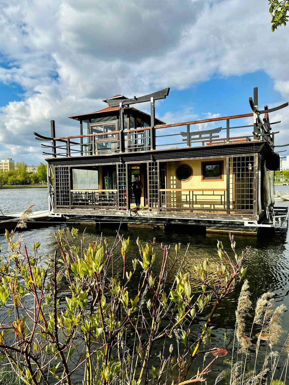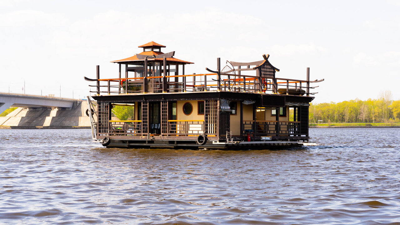 Аренда хаусбота в японском стиле на воде. Включено: оборудованная кухня, гриль, гостиная, верхняя палуба для мероприятий, санузел. Включена аренда сапбордов. 10000 руб/ч в будни, 12000 руб/ч в выходные. Максимальная вместимость - 15 гостей.