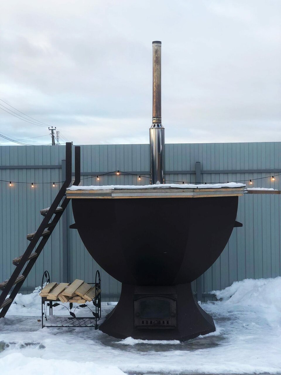 Сибирский банный чан из нержавеющей стали. Посидеть и попариться в нём это незабываемое впечатление, особенно в дождливую и снежную погоду.