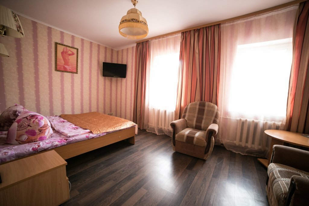 Переночевать нормально. Покушать можно в ресторане. Баня есть, но с веником нельзя. Погулять негде, т.к. частный сектор и трасса рядом. Смотрите номера прежде, а то можно смотреть из своего номера на жилой дом напротив с бабушкой в халате в окне. Деньги не возвращают, хотя и заранее отменяешь бронь и предупреждаешь об этом. Телевизоры в номере не Смарт. Парковка есть.
