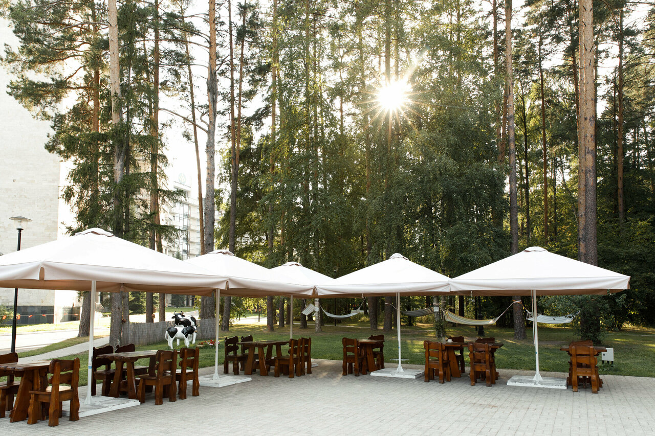 - Возможность прогулок вдоль реки и по лесу.; Два ресторана с вкусной едой и живописными видами.; Ухоженная и чистая территория.; Красивая природа, сосновый лес, свежий воздух.; Живая классическая музыка во время завтрака.