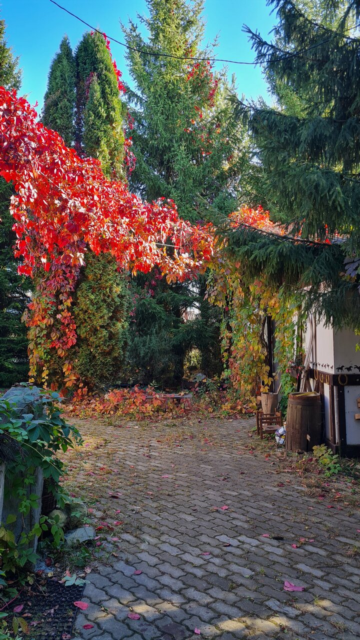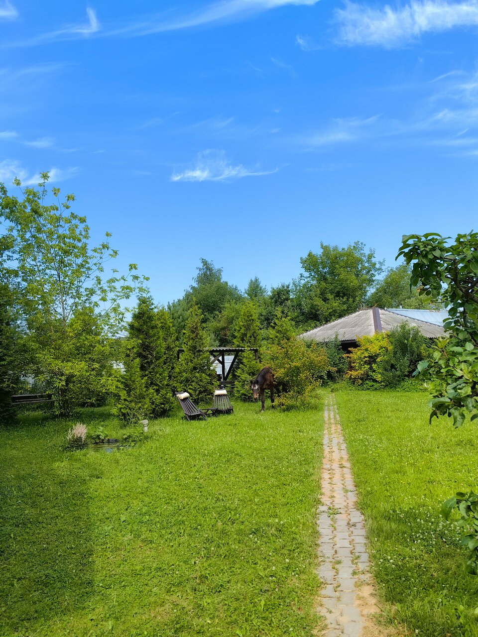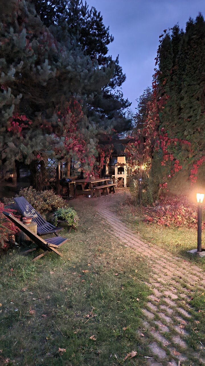 Тихо, атмосферно, умиротворяюще. Днём вы можете отдохнуть под перголой среди хвойных деревьев у бассейна, а рядом с вами будет пастись меланхоличный жеребец, а вечером отведать уникальных по рецепту блюд от хозяйки и расслабиться в вермейерской гостиной. Кстати, ввиду проблемы с бронью нам предложили номер повышенной категории — и это говорит многое о том, как здесь относятся к гостям. Большое спасибо!