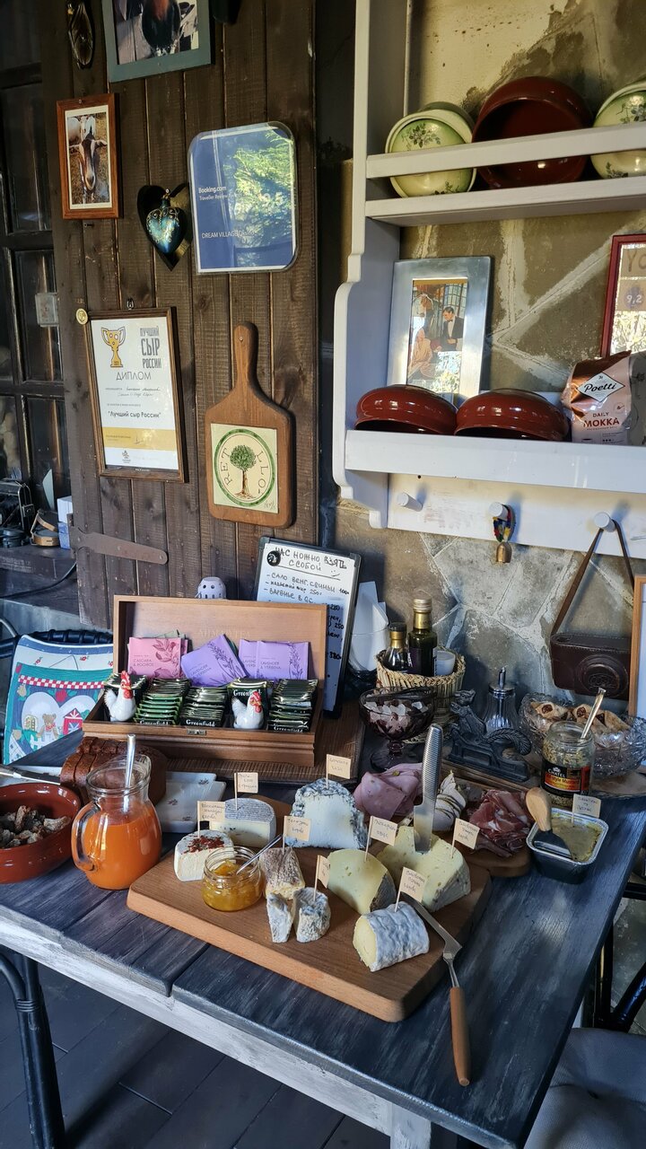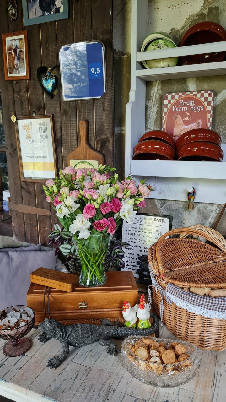 - Уютный и продуманный интерьер.; Наличие фермы с животными.; Атмосферное и тихое место для отдыха от города.; Вкусная еда (фермерские продукты, домашняя выпечка, сыры, соусы).; Возможность покупки сыров и заготовок с собой.