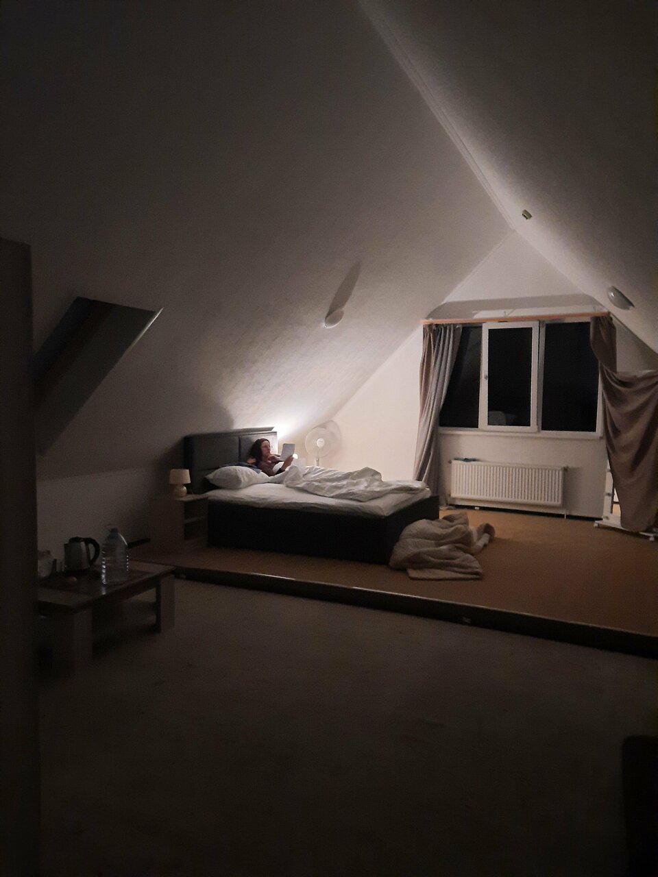 Люкс номер с одной большой кроватью размер 180/200. Оснащен Яндекс станция Алиса с функцией инфоконсьерж, TV и аудио, wi-fi, кондиционер, сейф, холодильник, гардеробный шкаф, письменный стол, стул, душевая комната, приборы гигиенической косметики.