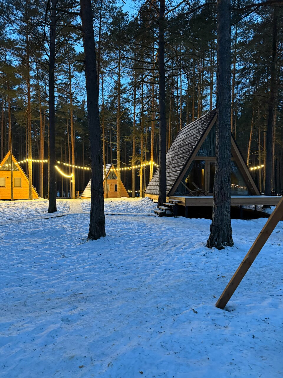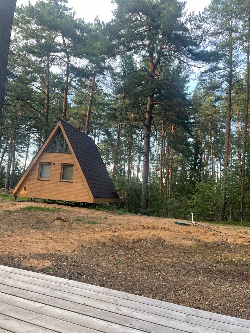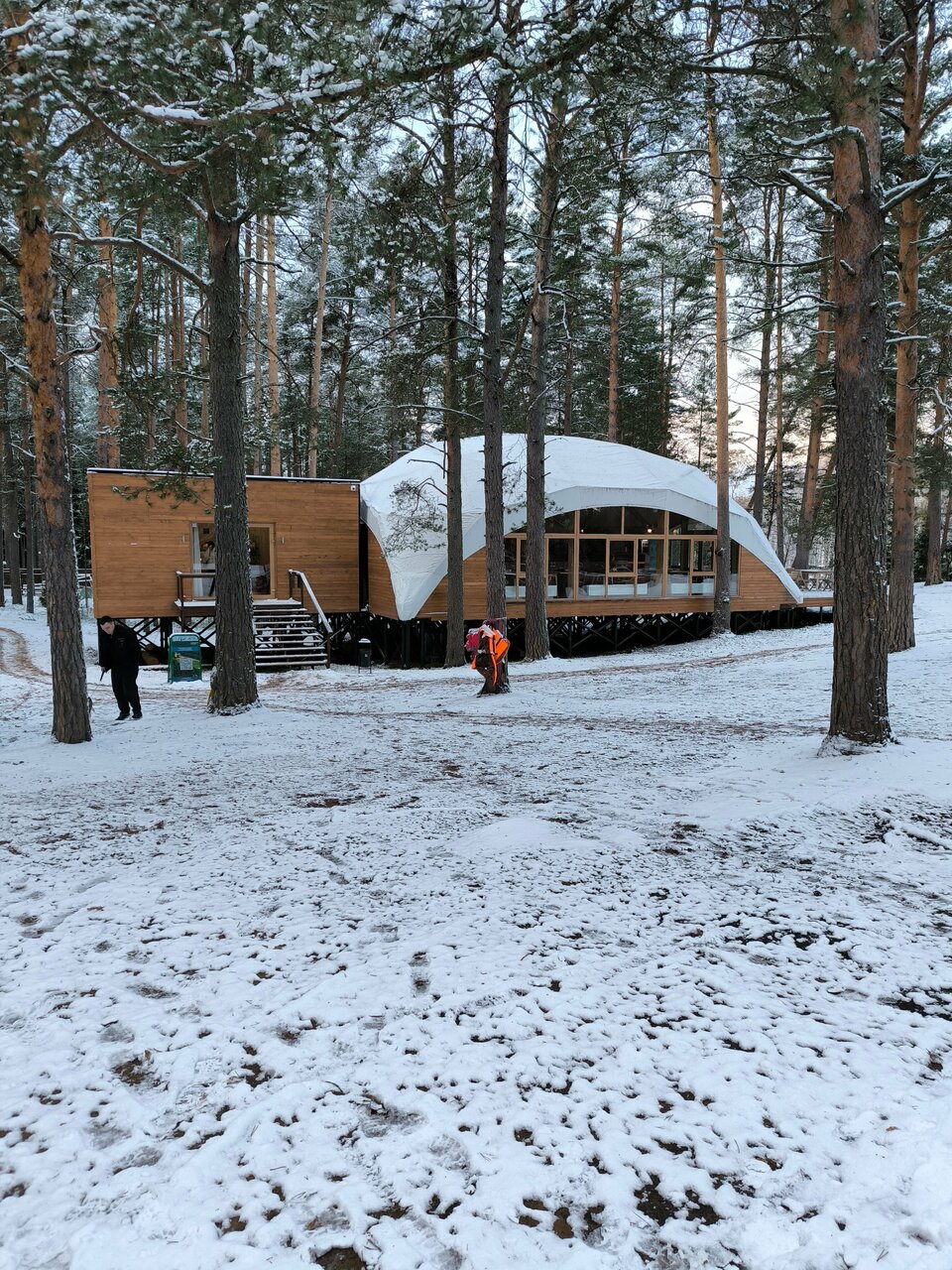 Очень удачное расположение глемпинга в сосновом бору. Красивый двухэтажный чистый домик с двумя просторными кроватями и собственным чаном. Но не хватало некоторой посуды (бегали в ресторан, где нам все предоставили). На территории расположен бассейн с водой под 30 градусов, были зимой, поэтому для меня показалось холодновато, но ребенок был в восторге. Из минусов отметила бы завтрак: еда очень холодная (ее такую и выносили) и маленький выбор. И не помешал бы у домика небольшой мангал (есть только общий возле ресторана).