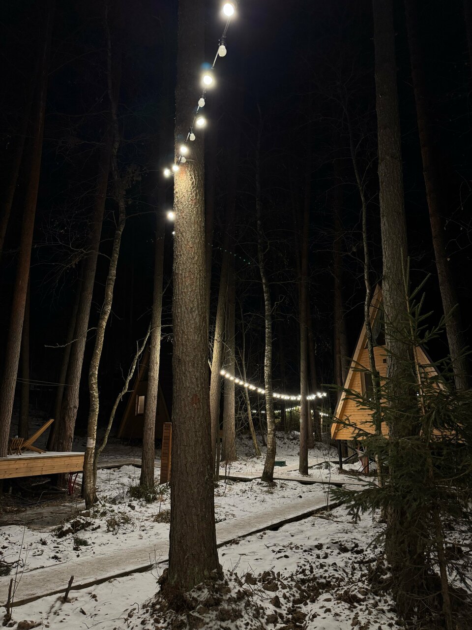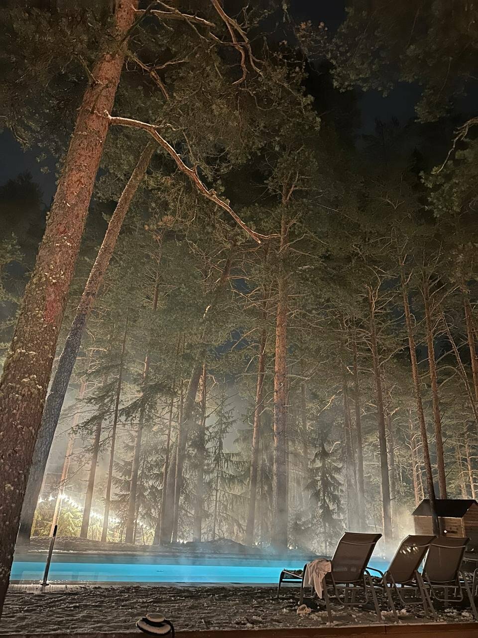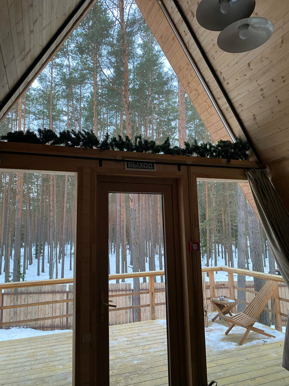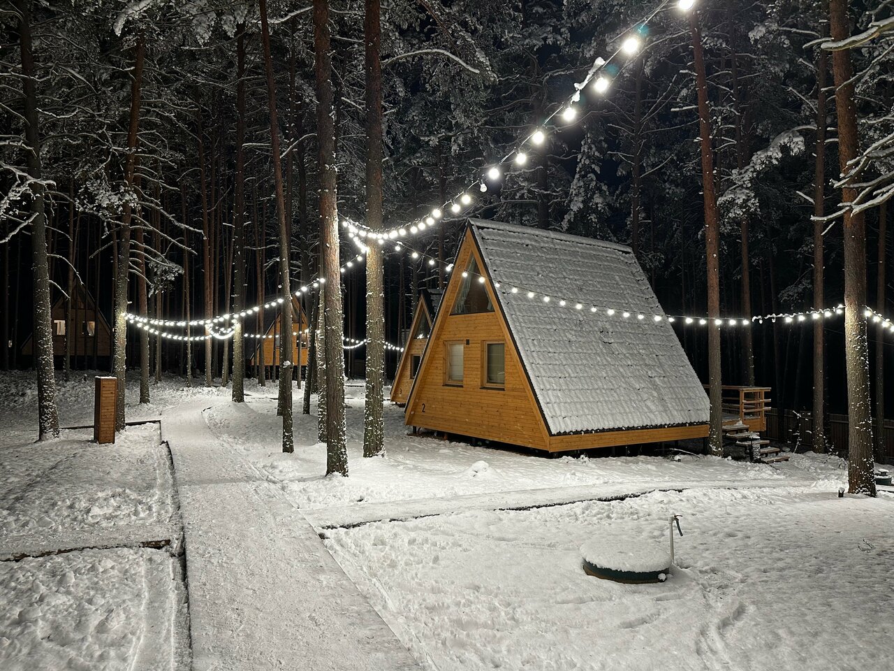 Очень удачное расположение глемпинга в сосновом бору. Красивый двухэтажный чистый домик с двумя просторными кроватями и собственным чаном. Но не хватало некоторой посуды (бегали в ресторан, где нам все предоставили). На территории расположен бассейн с водой под 30 градусов, были зимой, поэтому для меня показалось холодновато, но ребенок был в восторге. Из минусов отметила бы завтрак: еда очень холодная (ее такую и выносили) и маленький выбор. И не помешал бы у домика небольшой мангал (есть только общий возле ресторана).