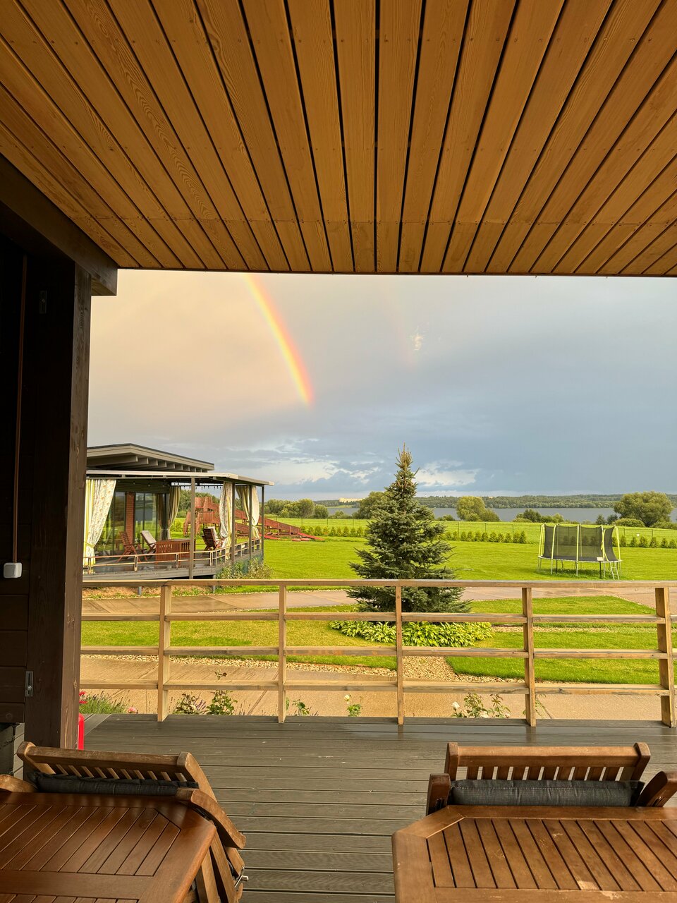 Прекрасная природа, свежие замечательные номера, своя мини ферма, возможность купить сыр, творого, пр. Качество еды — достойное. Возможность порыбачить и выловить улов в их пруду. На выходные — отлично.