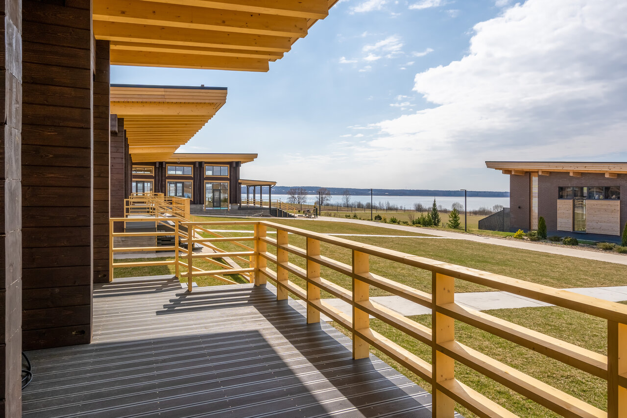 Услуги: — Проживание в номерах с кондиционером, звукоизоляцией, Wi-Fi, мини-баром, санузлом и телевизором. — Питание: ресторан, кафе, бар, завтрак (по меню), детское меню. — Досуг: крытый бассейн, сауна, массаж, йога, настольный теннис, рыбалка, катание на лодках, вечерняя программа. — Для семей: детская площадка, люльки. — Для животных: платное размещение. — Территория: песчаный пляж, сад, летняя веранда, площадка для пикника. — Дополнительно: парковка (бесплатная, с услугами парковщика), трансфер (платный), прокат снаряжения, камера хранения.