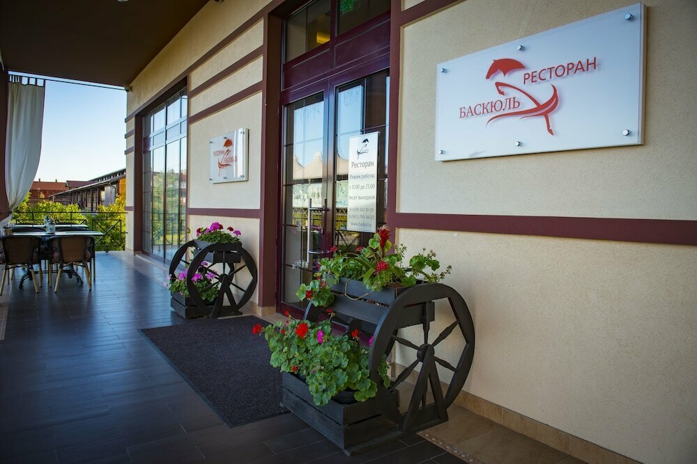 Конеферма. Номера чистые, из окна вид на лошадей гуляющих. Территория большая, парковка, охрана, но вот с питанием плохо, ресторан ужасный, поужинали вдвоём почти на 10к, мясо в каких то отвратительных специях, курица так же. Доесть не вышло. В остальном неплохо, есть зоопарк и детские площадки.