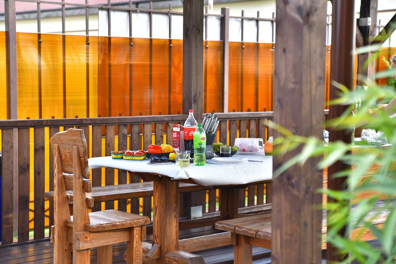 Кафе не работает в пн и вт, об этом при бронировании ни слова. Мне повезло-заселялась в 7 вечера вторника после длительной дороги,оказалось, что поесть негде. Админ посоветовал доставку,но ни один ближайший магазин привезти уже не смог,близлежащие кафе просто не брали трубку. В номерах очень пахнет конюшней,открытые окна не помогают. Вишенка на торте- такси на территорию не пропускают,оказывается нужно оформлять пропуск,о чем конечно же тоже не сказали, увлекательная прогулка в ливень с чемоданом до кпп забила окончательный гвоздь. И все это удовольствие стоит почти 10к