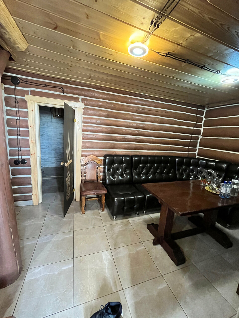 Уютные домики в 2 этажа. На первом баня, помывочная, стол. Телевизор, караоке. Чайник, стаканы. Сахар, пакетики с чаем. Замечу, что такое не везде. Если позвонить заранее. баню, затопят к вашему приезду. На втором этаже бильярдная, телевизор. Комната отдыха, диваны. Мне нужен был ночлег. Постельное бельё чистое. Полотенце в комплекте. На своей закрытой территории парковка для машин. Территория на ночь закрывается. Шума с дороги не слышно, всё тихо, спокойно. На 1 этаже газовый котёл, который идёт на отопление дома.