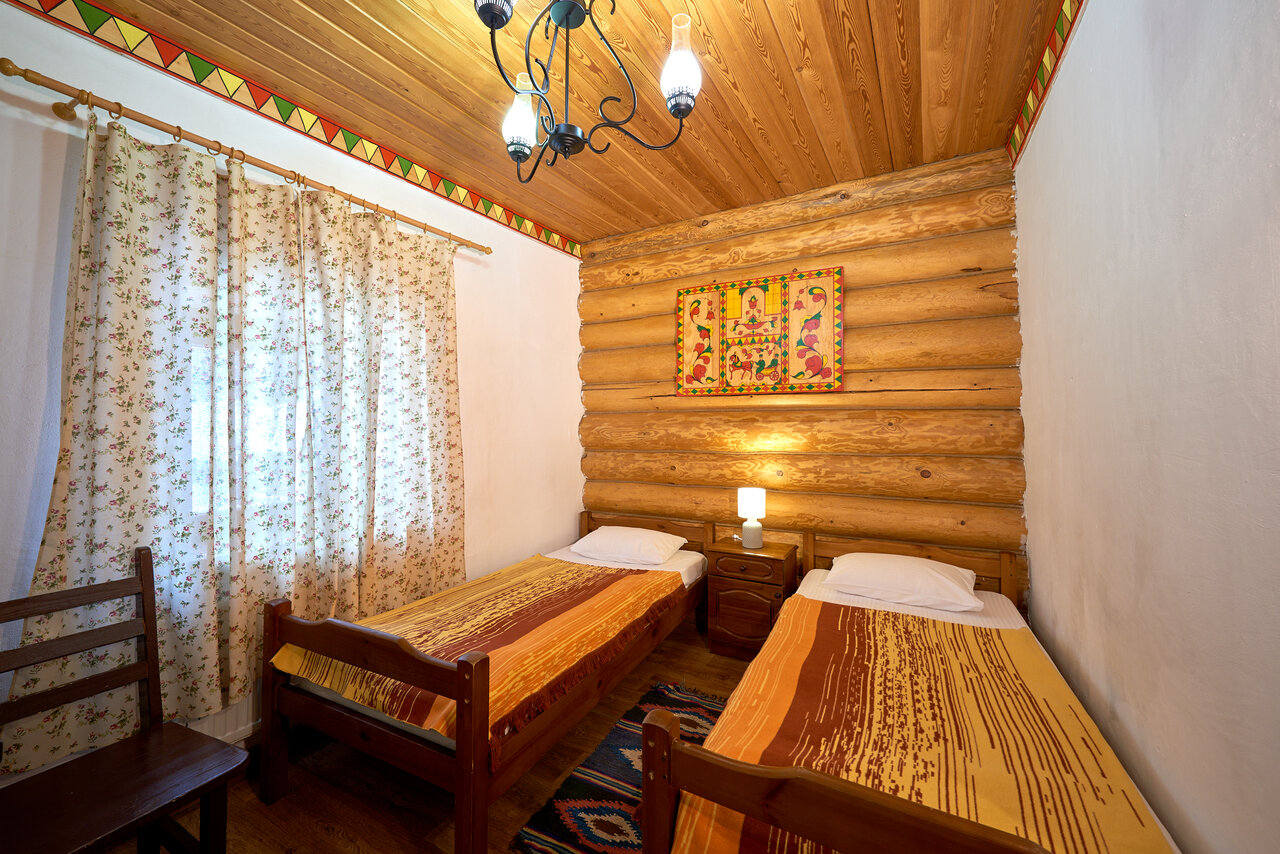 - Сервис доставки вещей.; Удобное расположение (близко к основным местам Этномира).; Уютные номера.; Удобные кровати.; Наличие куллера с водой.