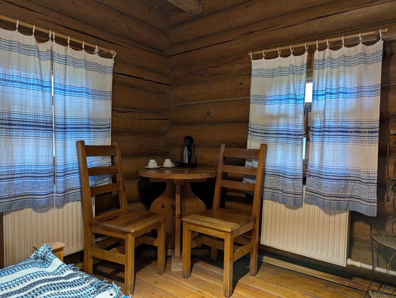 Цена завышена сильно. Деревянный рубленый дом, с щелями и плохими окнами. В этноотеле Беларусь всего 5 номеров на трёх этажах. На первом этаже очень холодно в номерах у друзей температура не поднималась выше 15 градусов. На втором этаже нормально +20, на третьем в номере было +23. Дверь в холл плохо закрывается, лестница опасно перекошена. Слышимость отличная — мы без труда все переговаривались через стены и потолок. В общем очень натуральное этническое жилище. С современным санузлом и очень работающим холодильником. Неоспоримый плюс что в деревянном доме очень хорошо дышится. И вся инфраструктура папка Этномире вот рядышком. Три дня счастья и прогулок и всяких развлечений.