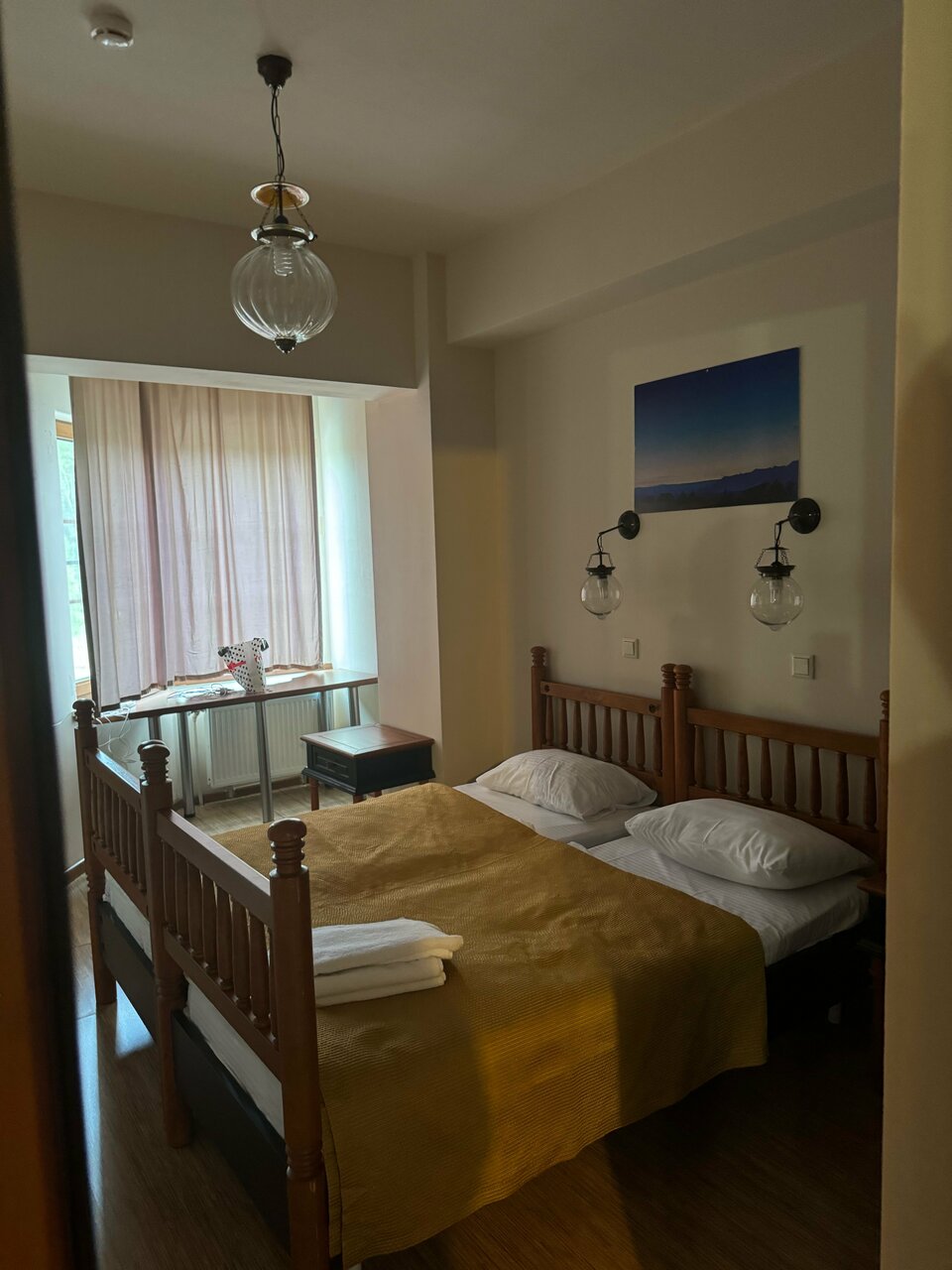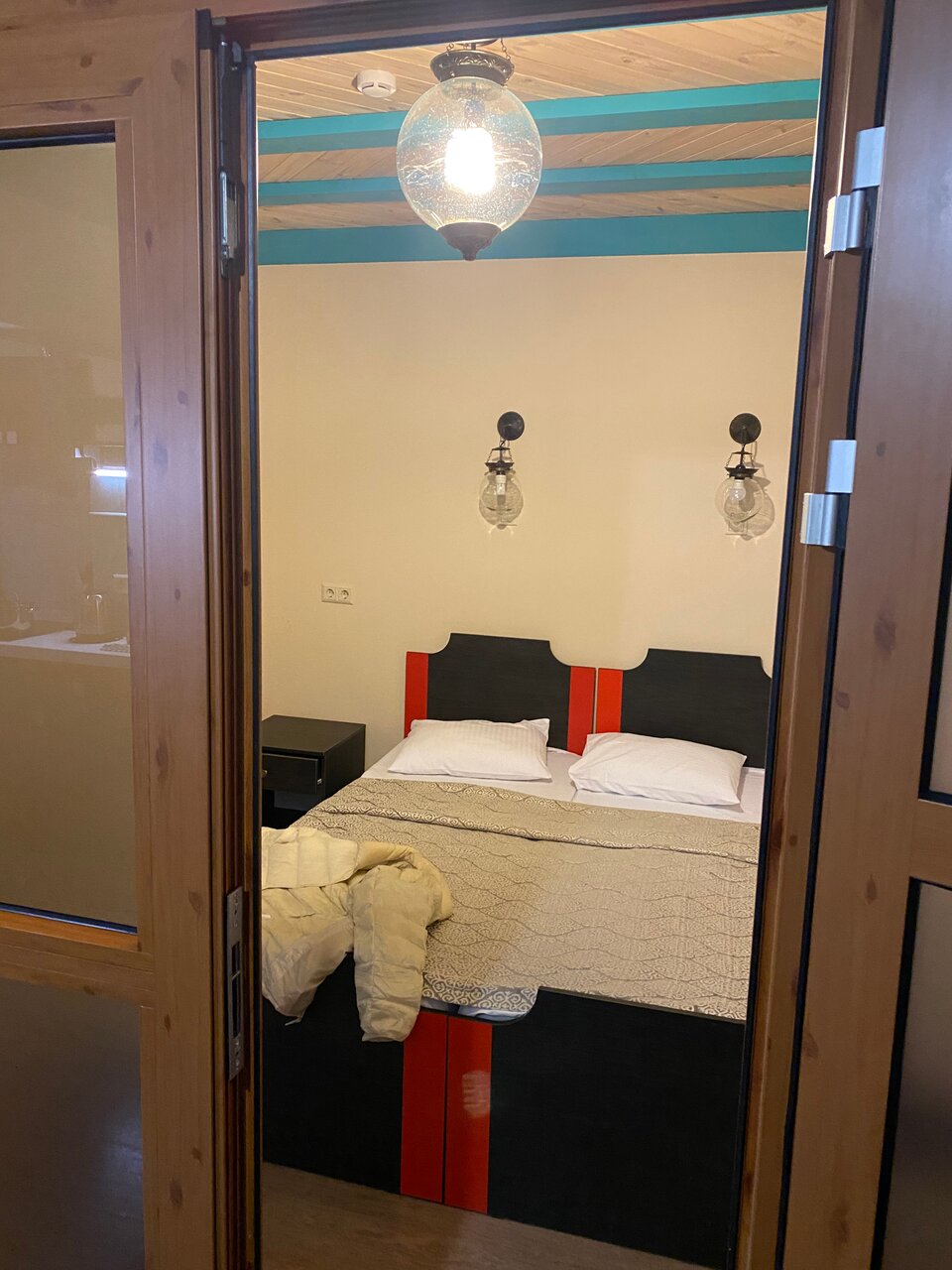 Жили в номере 101, в туалете СИЛЬНЫЙ НЕПРИЯТНЫЙ ЗАПАХ наверное из канализации, на второе утро проснулись с головной болью, нос, горло ‘дерет’, не знаю что там не так! Вода ржавая, воняет, душ за три дня не принимали, зубы чистили использовали воду из бутылки! Номер чистый, просторный постельное белье чистое белоснежное, но это не важно, в номере находиться неприятно, пожалели что остались на вторую ночевку. Отдали за четверых 26тыс за 2 ночи, огромная сумма за такое проживание. Уборки в номере нет, только мусорную корзину опустошали, она одна в номере, зеркало тоже только одно в санузле, телевизора нет, кондиционера нет, дополнительных подушек, одеял нет.