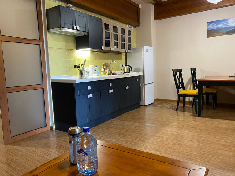 Апартаменты с кухней, очень удобно. Чисто, уютно, есть все необходимое. С детьми очень удобный вариант
