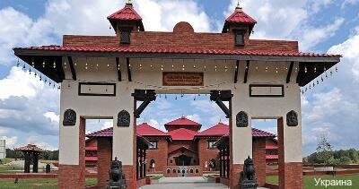 Этно мир, огромнейшая территория с гостиницами в разных стилях со всего мира, мы жили в хате, потому что только туда можно с собакой.Отдельный дом, сад, в нутри всё отлично. Нам очень понравилось, поедем ещё обязательно!!!