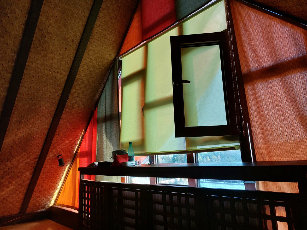 очень приятный корпус гостиницы на территории Этномира. аккуратный и выполнен в воздушном восточном стиле. номера на верхнем этаже с балкончиками. Номер большой и цветной, что радует глаз. в номере есть чайник и холодильник. На этажах кулеры с водой. Завтраки в соседнем корпусе, вполне разнообразные и места всем хватало. Что немного минусового в номере — нет топера на кинговую кровать. из-за этого ‘одна большая’ кровать не является таковой. какой-то бы удлинитель прибить бы где-то, чтобы те же зарядки включить нормально, из-за мансардности номера к редким розеткам в номере надо подлезать ползком. Ну и зеркало над раковиной как-то бы иначе придумать, Мансардность штука сложная для дизайна ванной, но жутко неудобно даже руки мыть — головой упираешься в складное зеркало..