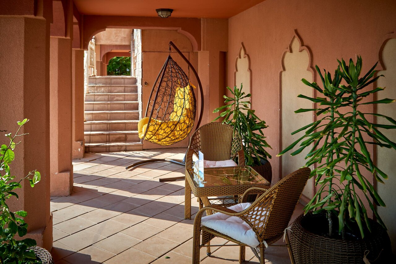 Большая веранда с красивым видом. Номер удобный, огромные уютные холлы. Пожалуй, лучший отель в Этоно парке. Обязательно приедем еще.