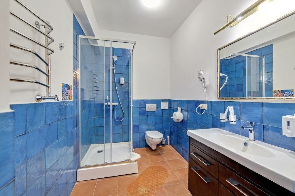 - Хороший напор воды в душе, комфортная температура.