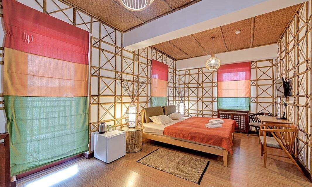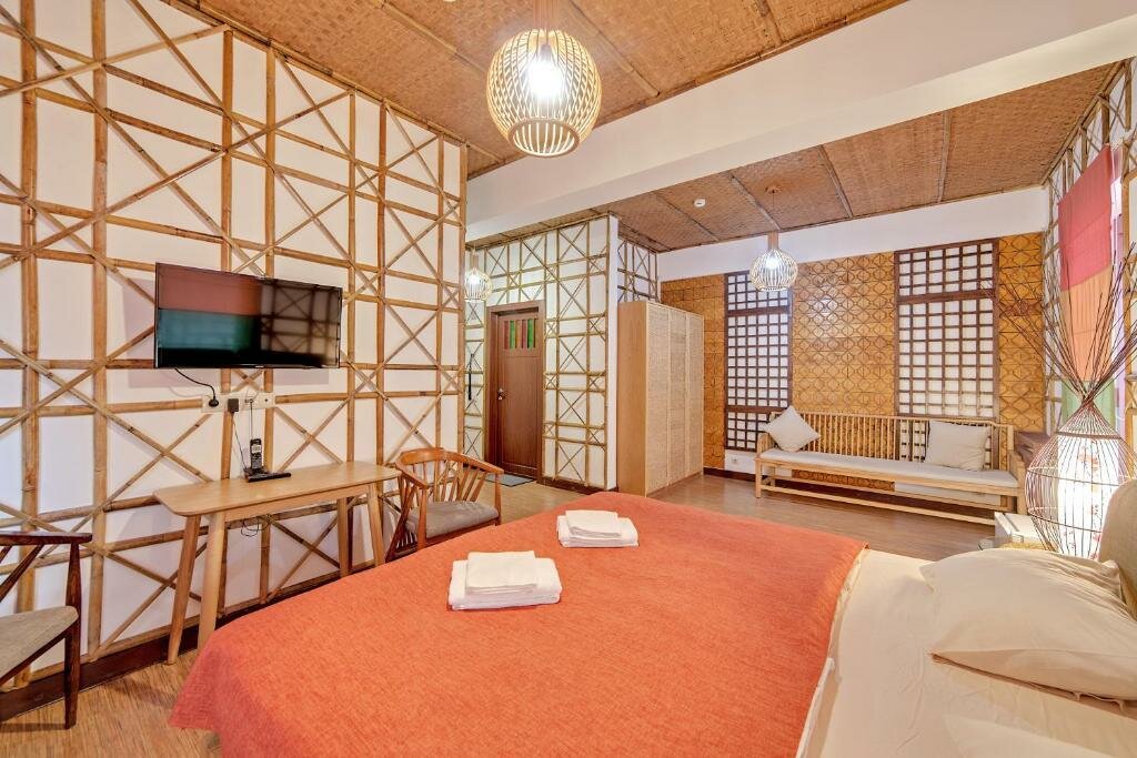 Красивое место, красивый отель, мы жили в большом номере на 2-ом этаже с балконом. Очень чисто, красивый дизайнбамбуки красивые светильники. Жаль на первом этаже не работает азиатский пруд