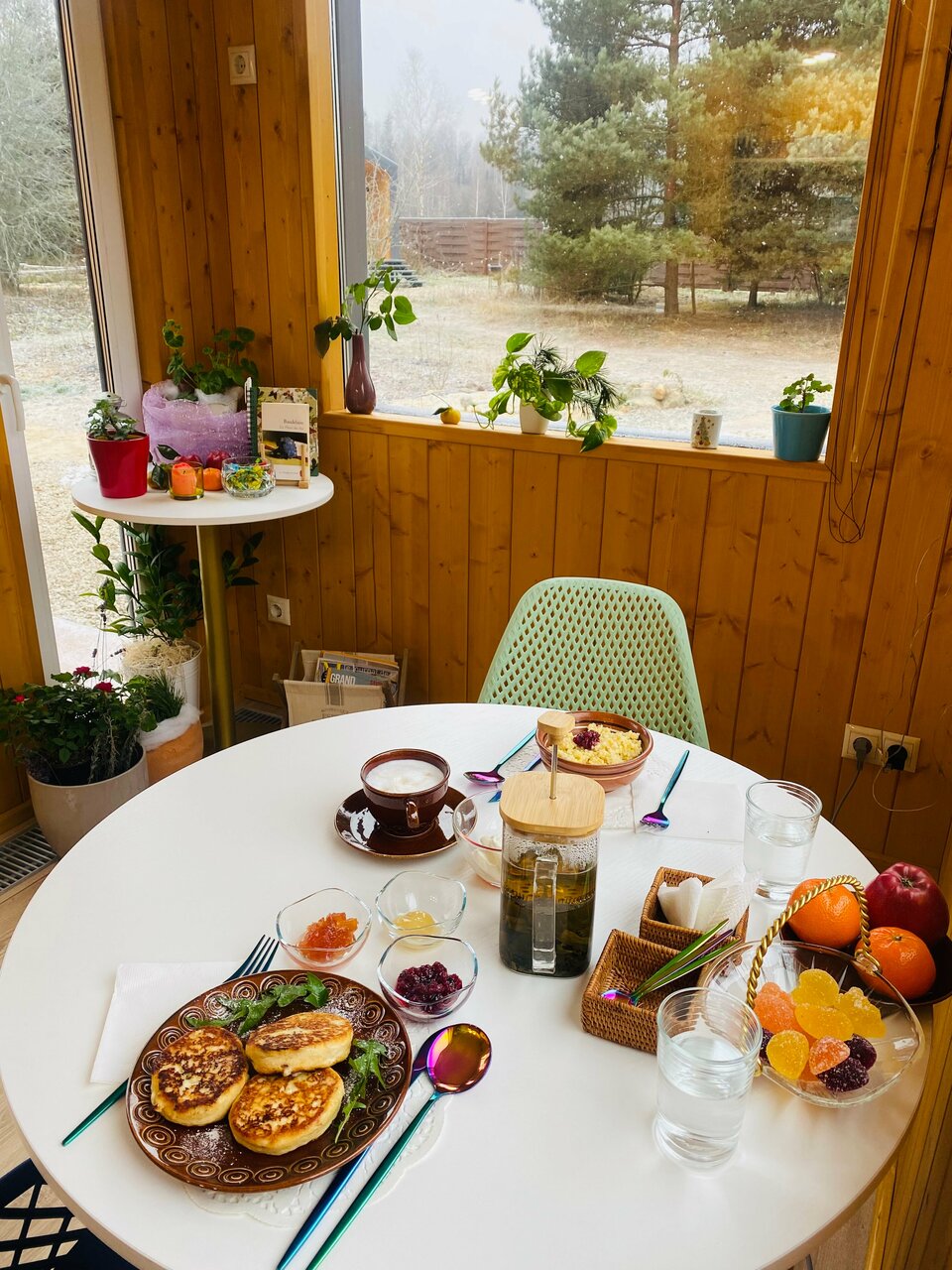 Прекрасное место для отдыха с семьей! Приезжали уже два раза, очень довольны, гостеприимные хозяева, в доме уютно, красиво и тепло, чистая и ухоженная территория. Мы были с мужем, дочкой и собакой, много гуляли, погода позволила пожарить шашлыки и пообедать на улице, очень порадовало, что можно с животными. Фото вкусного завтрака так же прилагаю, спасибо Людмиле за отменные вафли и вкусный кофе! Обязательно приедем еще