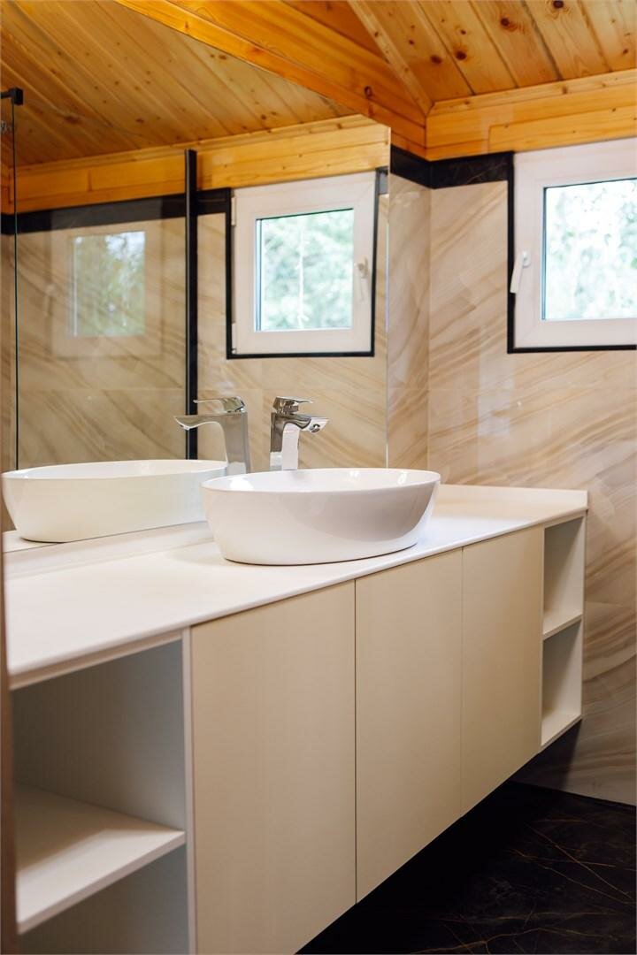 Отдыхали вчетвером парами на два дома. Брали дом у озера и романтик. Очень приятная и ухоженная территория, по центру озеро с карпами кои,рядом загон с коровками и овцами, а также потрясающе мягкими и милыми кроликами. У домов есть большие купели с подогревом, можно заказать баню. Дома уютные, пахнут деревом, очень теплые, температура регулируется, на стенах оригиналы картин итальянского художника. Кровати большие с хрустящим бельем. Комаров не было, их травили вместе с клещами. Место для шашлыка на верандах, мангал, шампура, решетки, всё есть, кроме расходников типа угля(это покупается отдельно). На кухне есть приборы, посуда, чашки, стаканы, кастрюли, сковорода, мини холодильник, чайник( всё для удобств). Очень порадовал завтрак, разнообразно и вкусно. Спасибо большое Екатерине за радушный прием и прекрасно проведенное время!