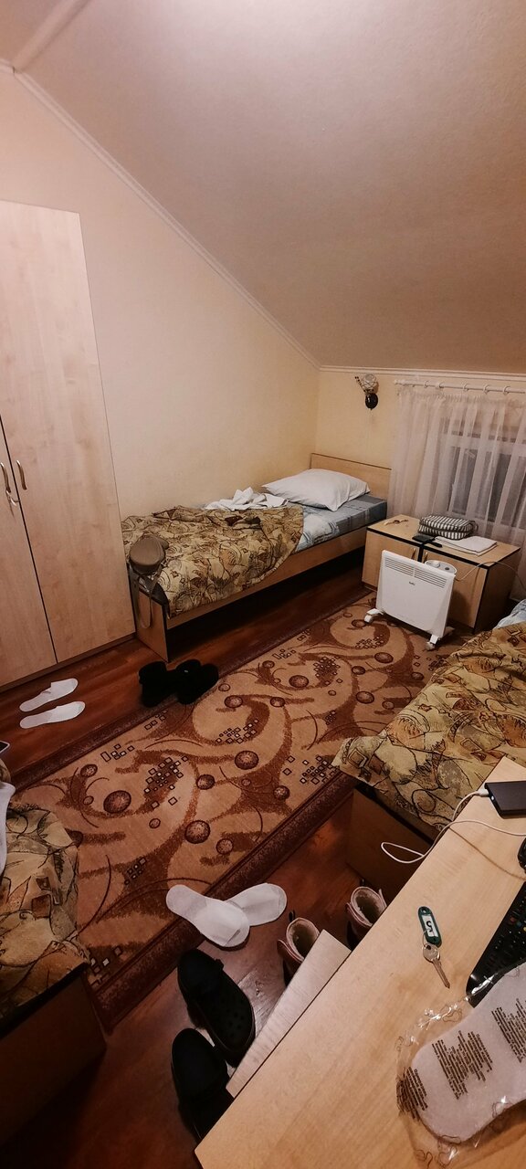 Санузел один на этаж. Маленькие номера. Еда вкусная. Кровати нормальные. На второй этаж (с номерами) очень крутая лестница. Замки плохо закрываются. Постелены ковры — снижает шумность, вообще тихо в номерах.