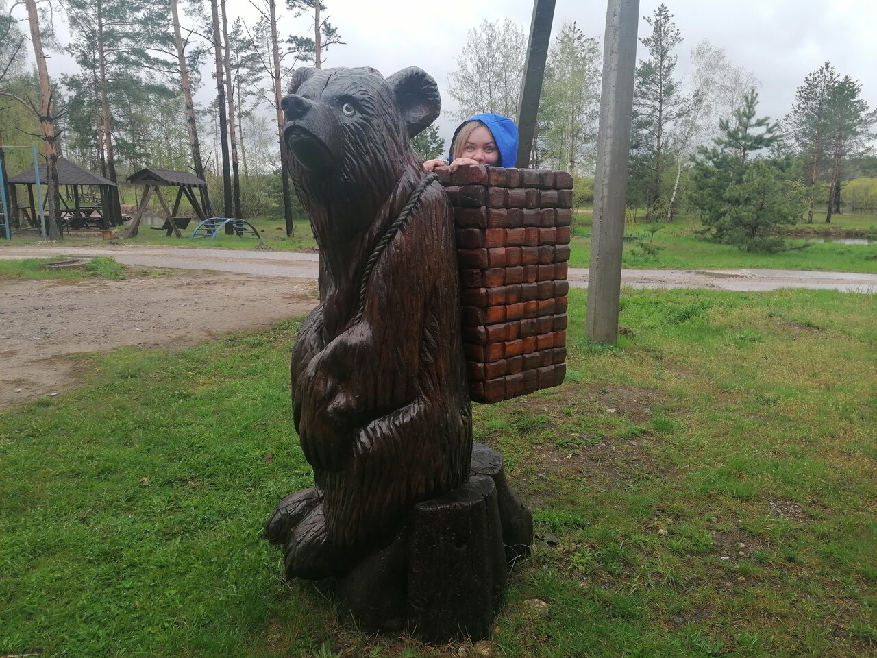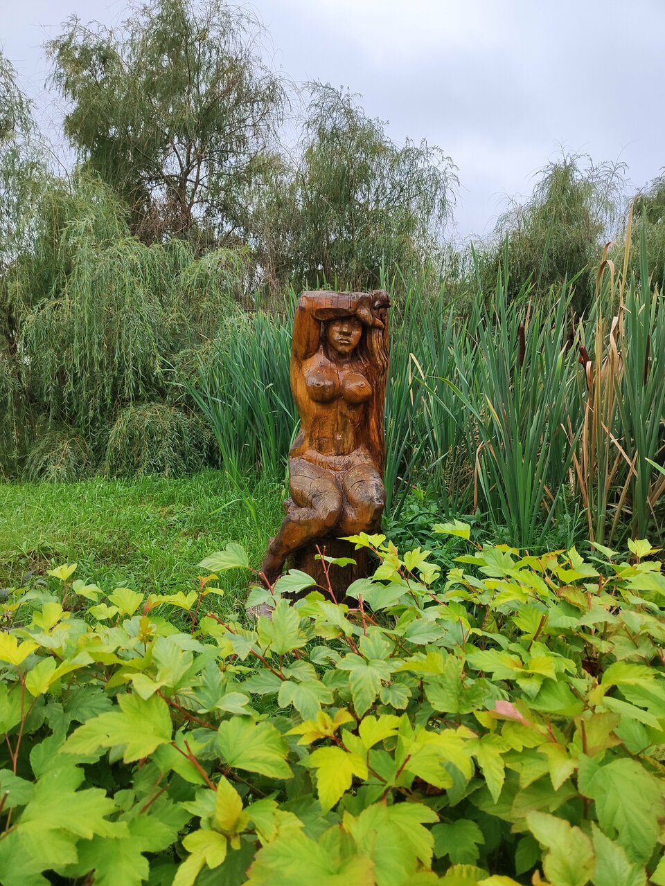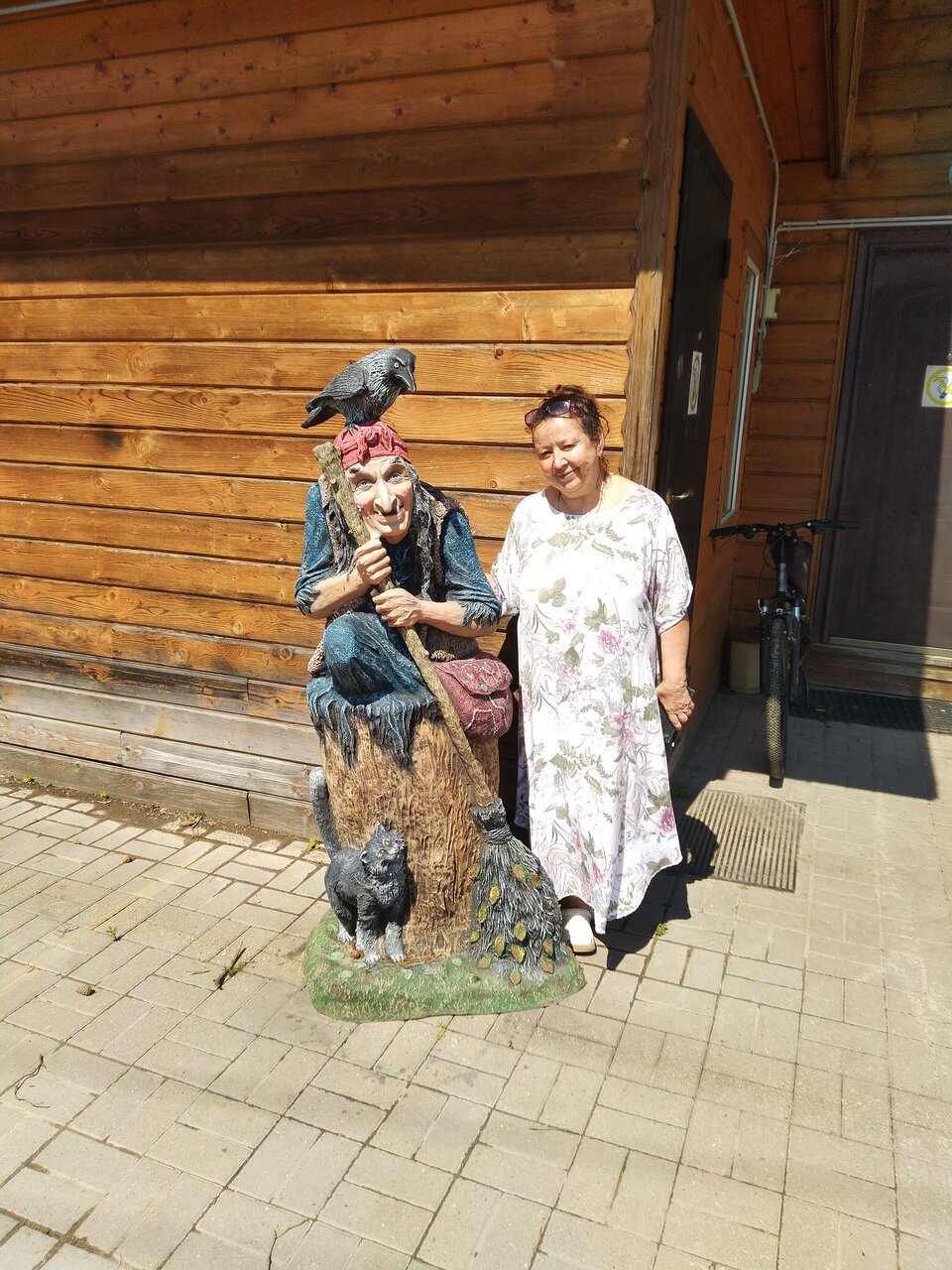 - Деревянные фигуры и произведения искусства на территории.
