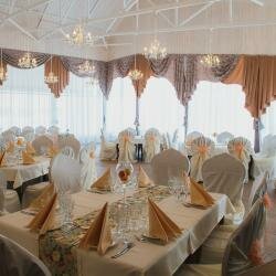 Услуги: — Проживание в номерах (3★) с кондиционером, Wi-Fi, телевизором, холодильником, звукоизоляцией. — Питание: ресторан, кафе, завтрак по меню. — Развлечения: дискотека, каток, бильярд, теннис, рыбалка, охота, прокат лыж и велосипедов. — Инфраструктура: сауна, баня, бассейн, терраса, детская площадка, конференц-зал. — Дополнительно: бесплатная парковка, трансфер (платный), проживание с животными, химчистка, прачечная.