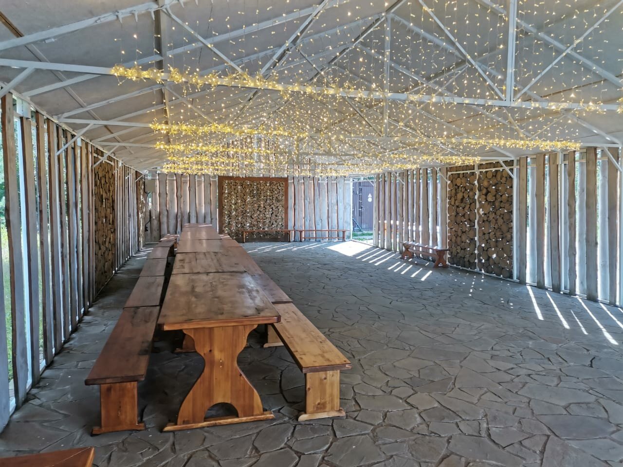 - Вежливый и гостеприимный персонал.; Детские площадки с интересным оформлением.; Возможность катания на сапах.; Близость к реке Пра.; Возможность аренды домов для больших компаний.