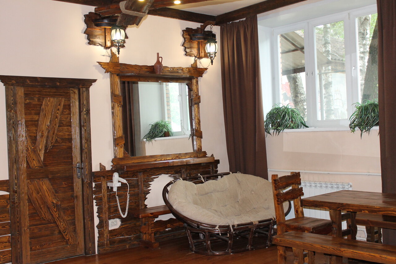 Удобства: номера с Wi-Fi, телевизором, холодильником; сауна, хаммам, баня, оздоровительный центр. Для гостей — парковка, трансфер (платный), прокат велосипедов, лыж и снегоходов, рыбалка, катание на лодках.